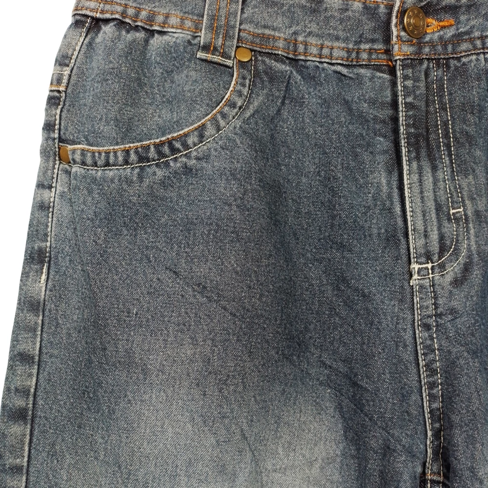 Egyedi jellemző(k): hátul zsebes, derekán gumis, koptatott