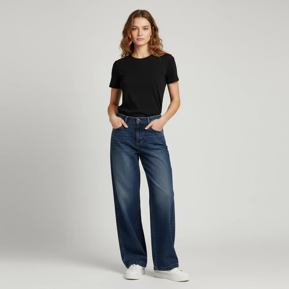 Sandra, sötétkék színű, hosszú női farmernadrág, M méret