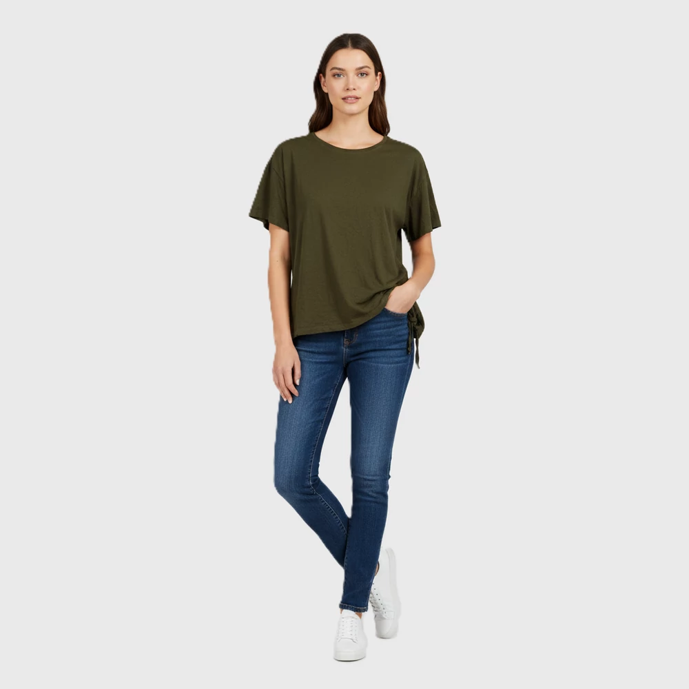 Aszimmetrikus szabású, oldalán cipzáras női felső