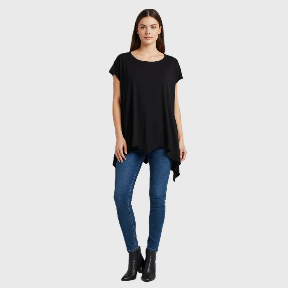 Aszimmetrikus szabású, oldalán cipzáras női felső