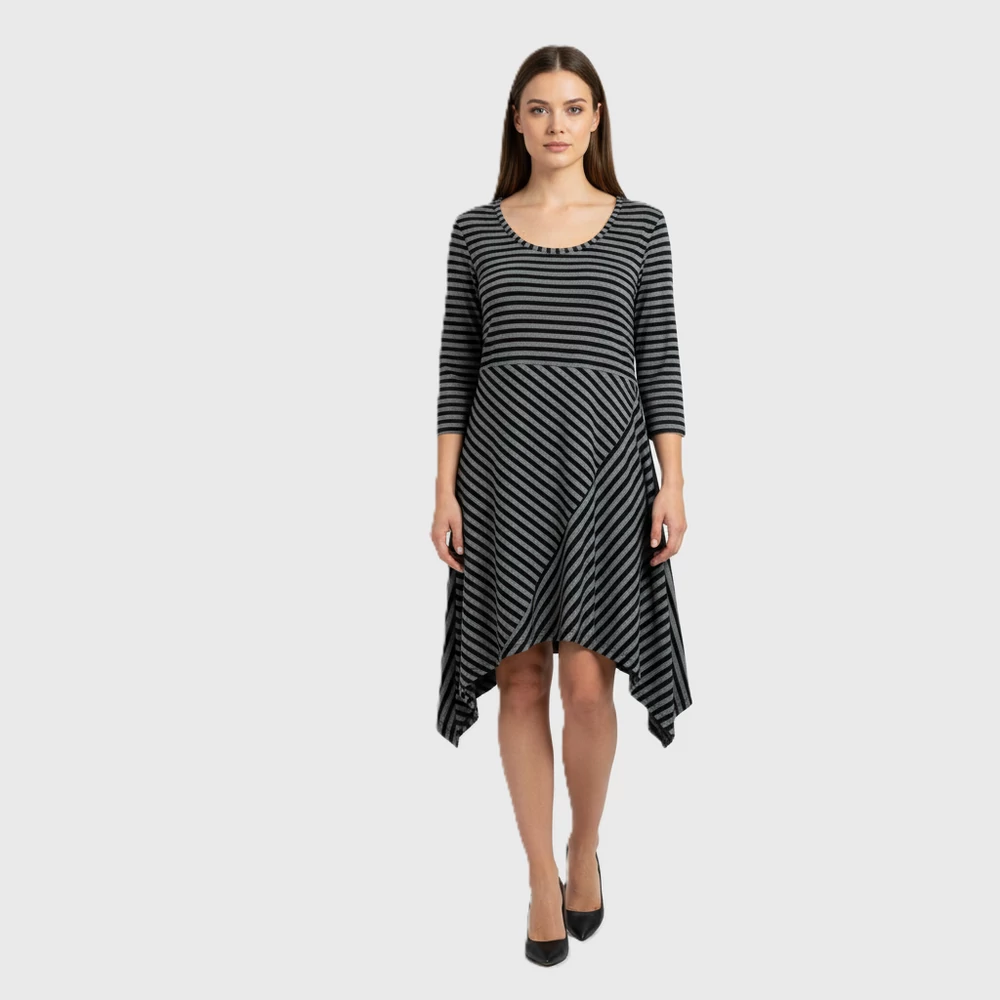 Hátrészén cipzáras, csíkos és béléses női egész ruha