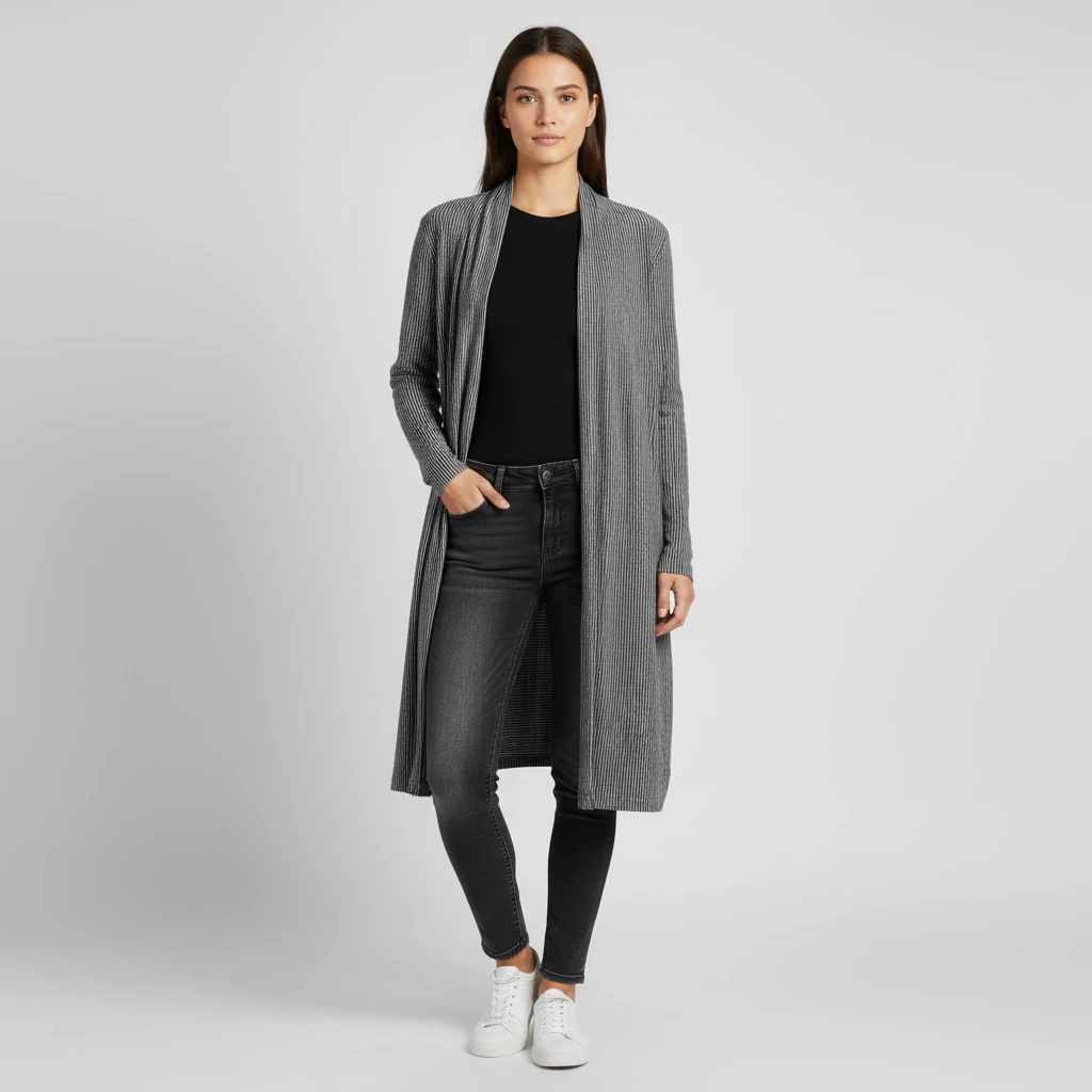 A termékfotón ábrázolt modell nem valós személy, mindössze az MI közreműködése által generált szimuláció és kifejezetten azt a célt szolgálja, hogy a ruhadarab egy outfit részeként történő viselés közben is bemutatásra kerüljön.