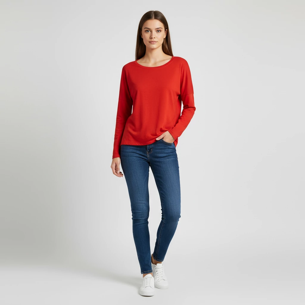 Amisu, piros színű, hosszú ujjú női felső, XS méret