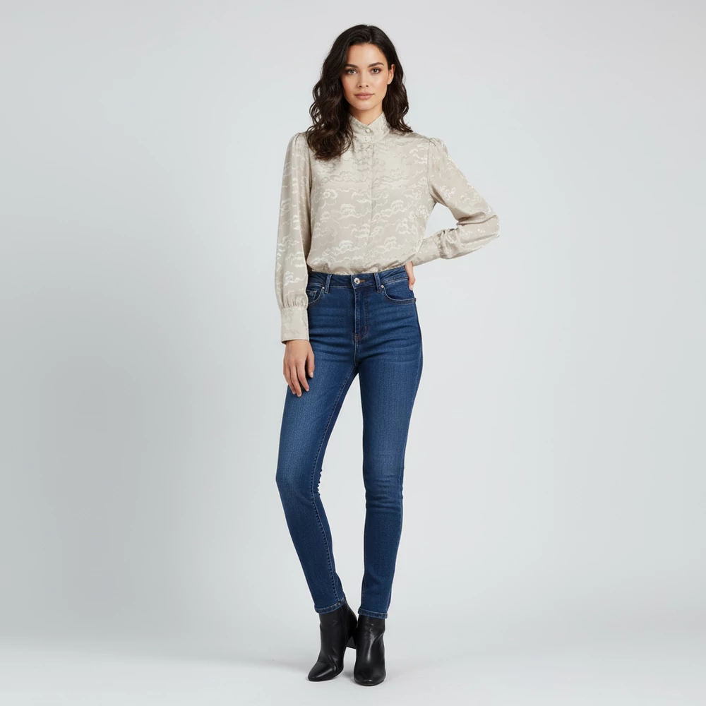 A termékfotón ábrázolt modell nem valós személy, mindössze az MI közreműködése által generált szimuláció és kifejezetten azt a célt szolgálja, hogy a ruhadarab egy outfit részeként történő viselés közben is bemutatásra kerüljön.