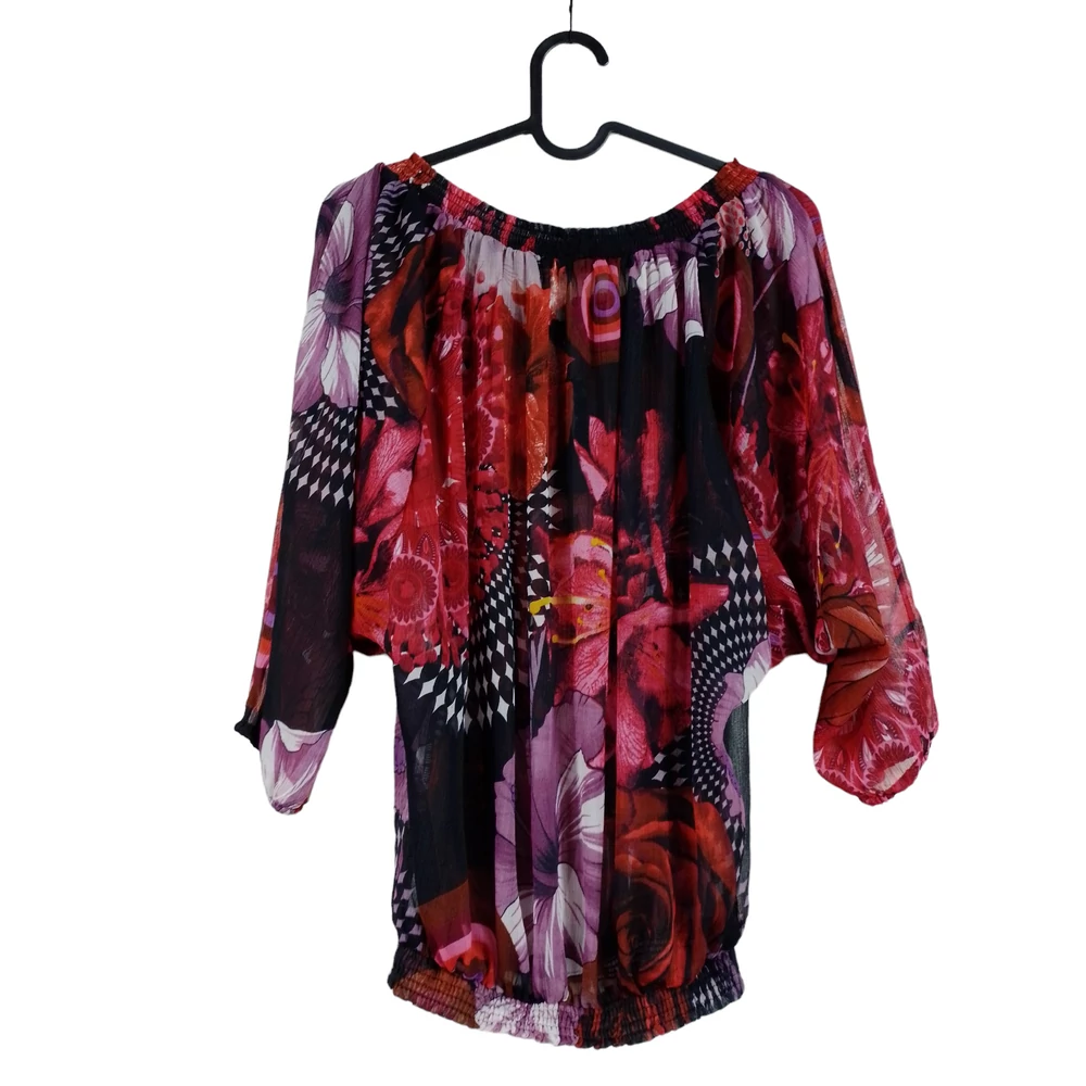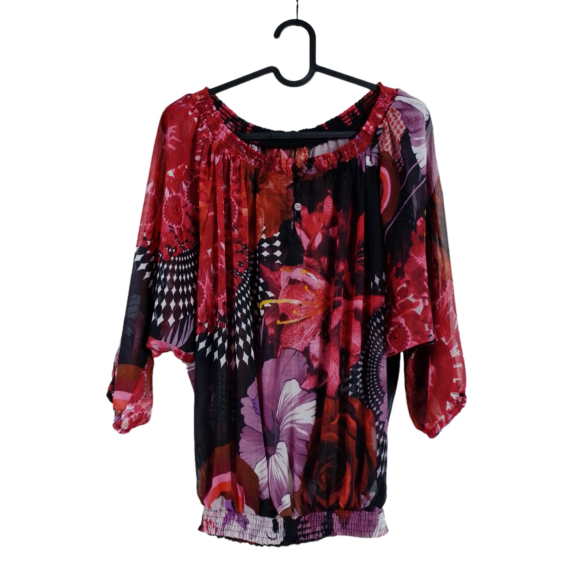 Rétegelt anyagú, hátrészén felsliccelt női felső