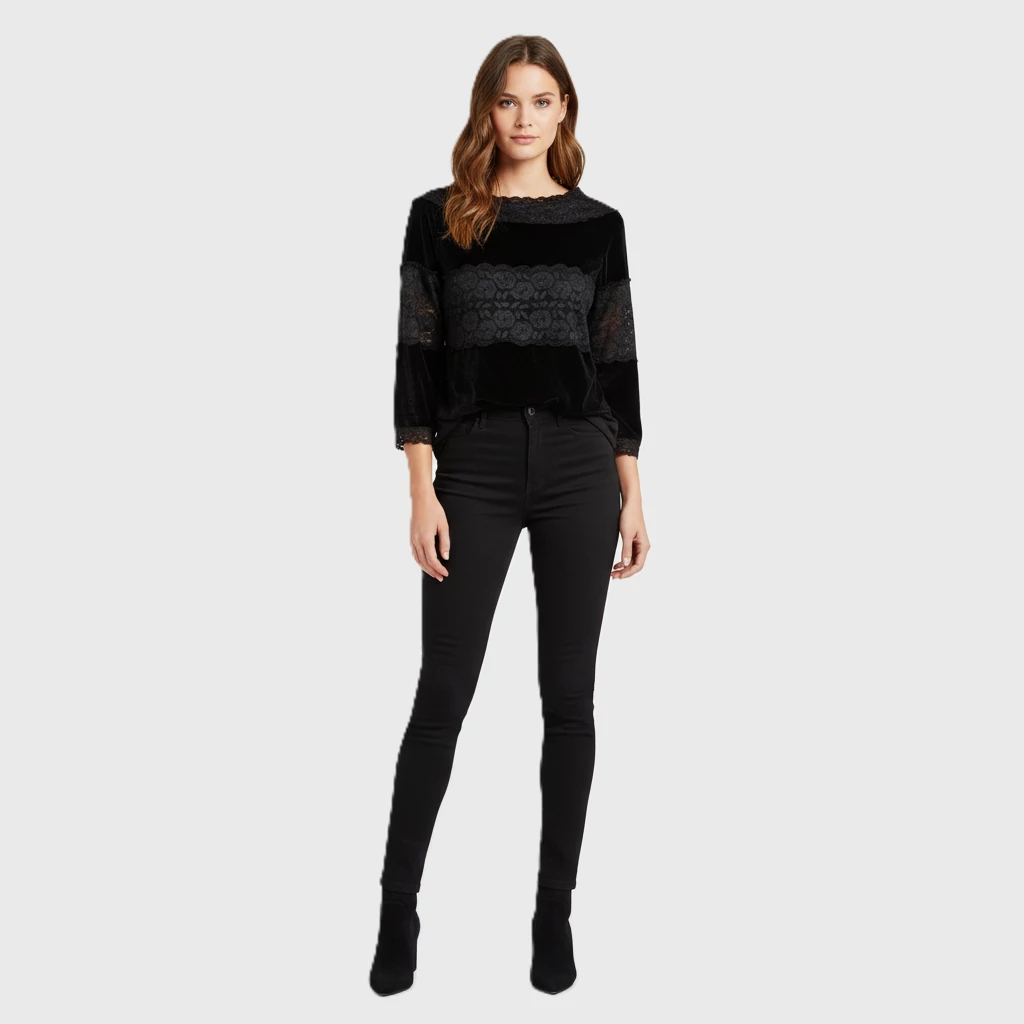 Bársonyból és csipkéből készült női felső