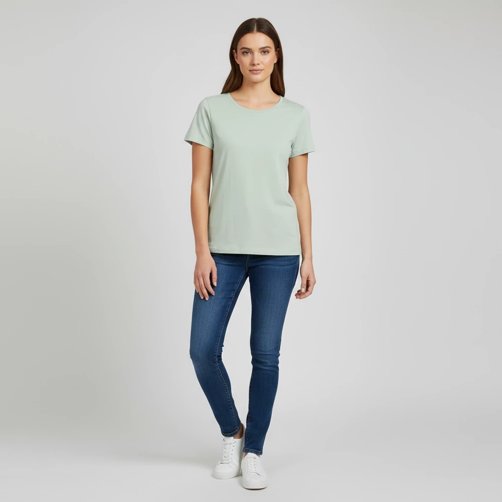 Basic, bambuszzöld színű, rövid ujjú női felső, XS méret