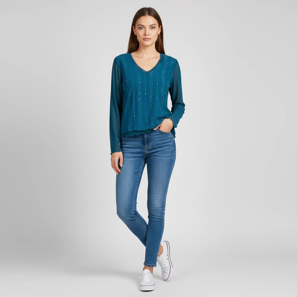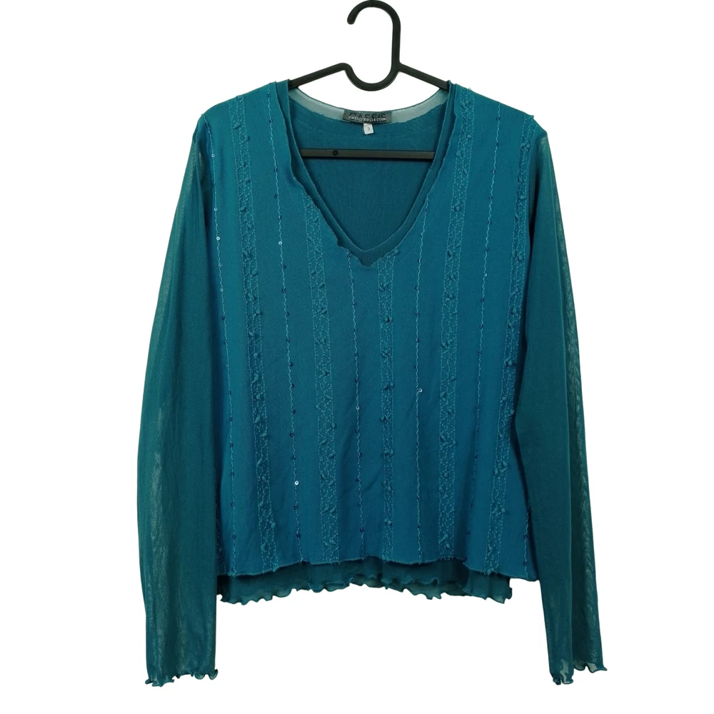 Cassis, petrolkék színű, hosszú ujjú női felső, M méret