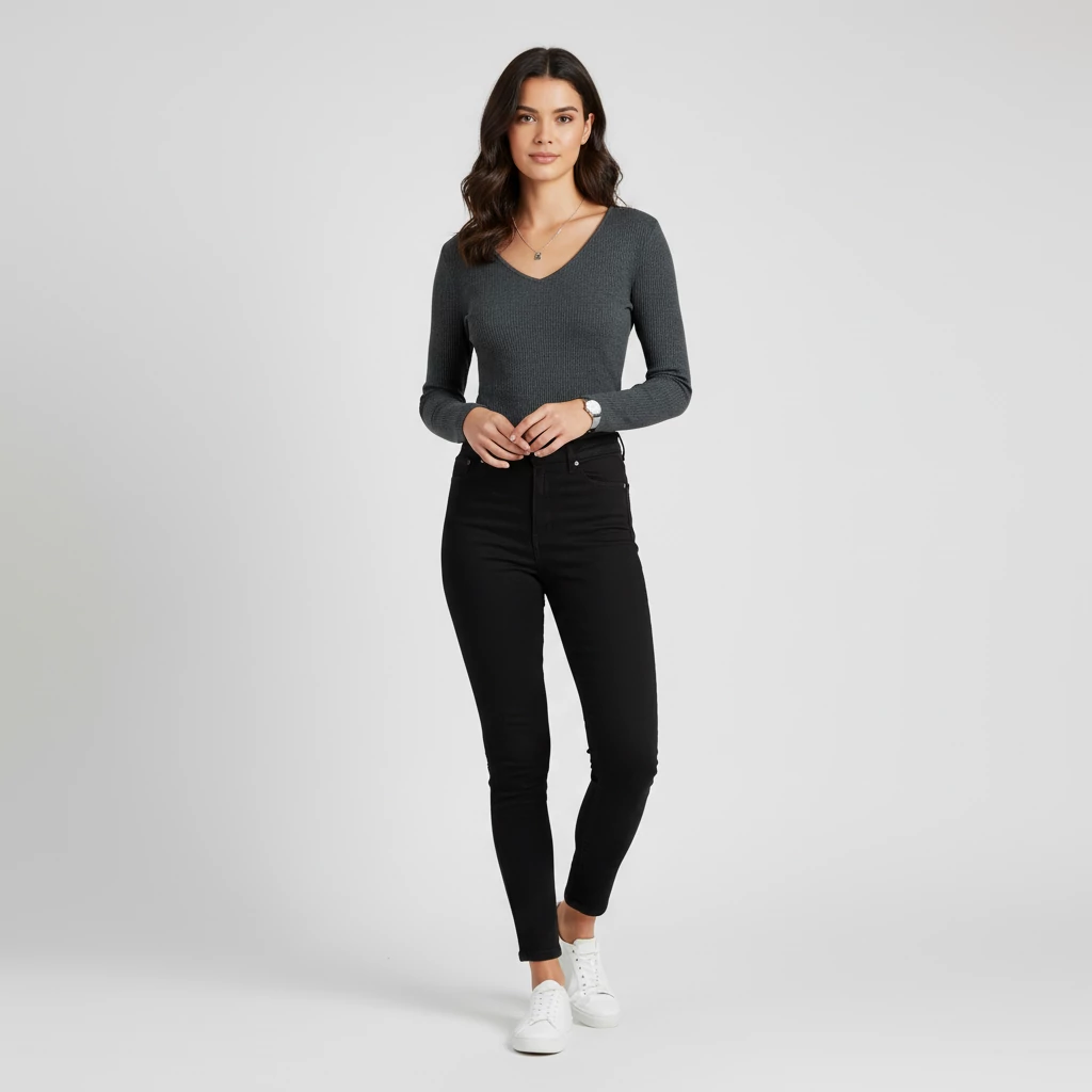 A termékfotón ábrázolt modell nem valós személy, mindössze az MI közreműködése által generált szimuláció és kifejezetten azt a célt szolgálja, hogy a ruhadarab egy outfit részeként történő viselés közben is bemutatásra kerüljön.