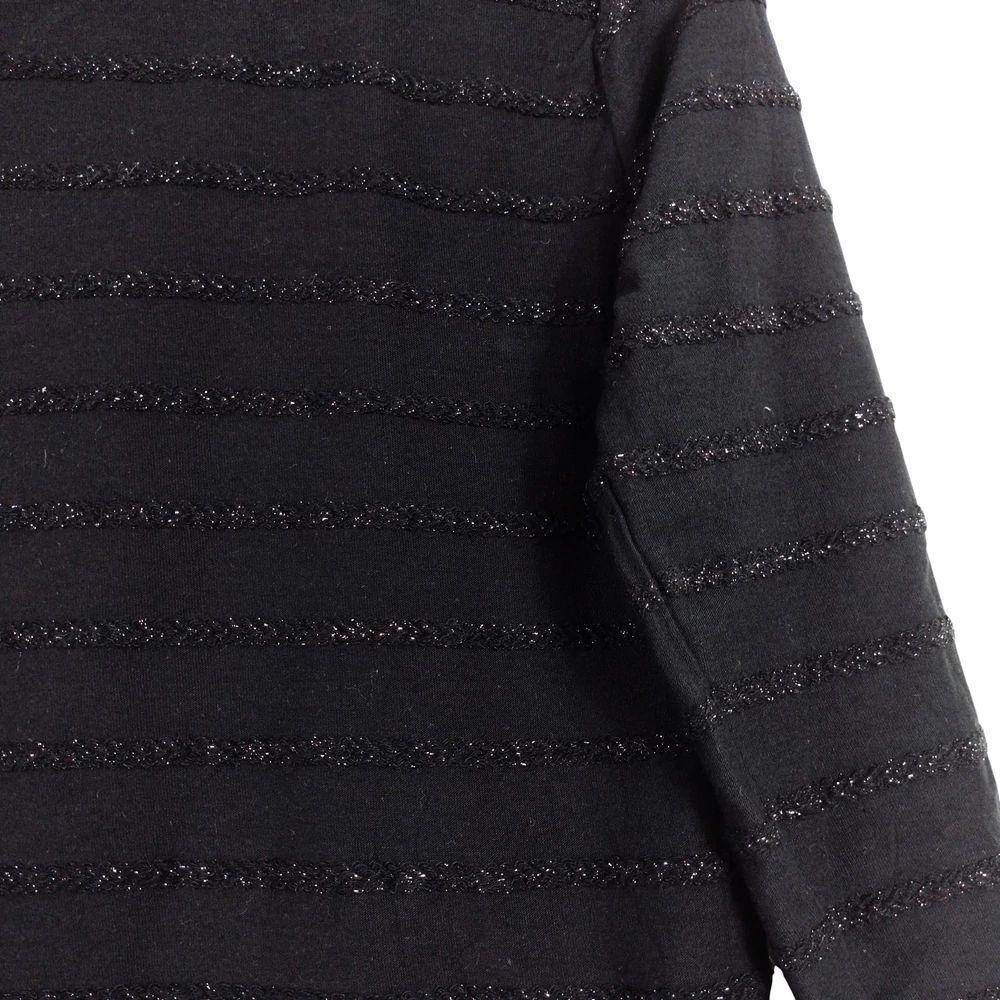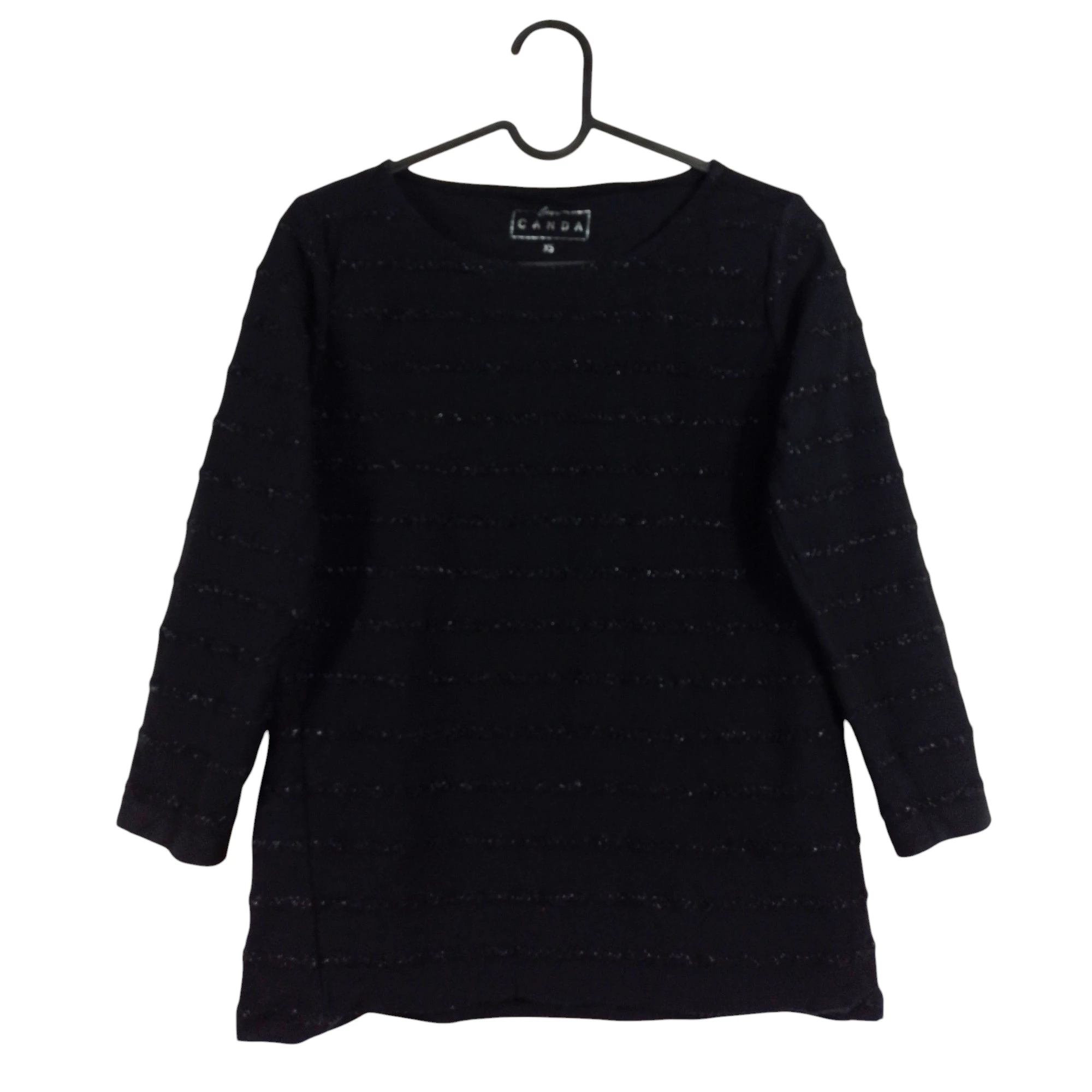 Nyakrészén gumis, ujja végén fodros, bélelt női felső