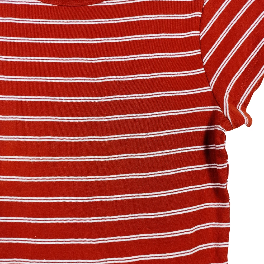 Alján csipkedíszítésű, színes női rövid fazonú trikó