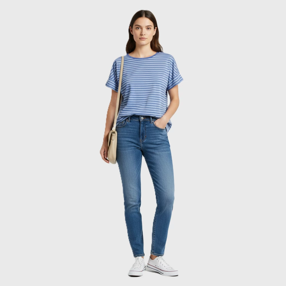 A termékfotón ábrázolt modell nem valós személy, mindössze az MI közreműködése által generált szimuláció és kifejezetten azt a célt szolgálja, hogy a ruhadarab egy outfit részeként történő viselés közben is bemutatásra kerüljön.