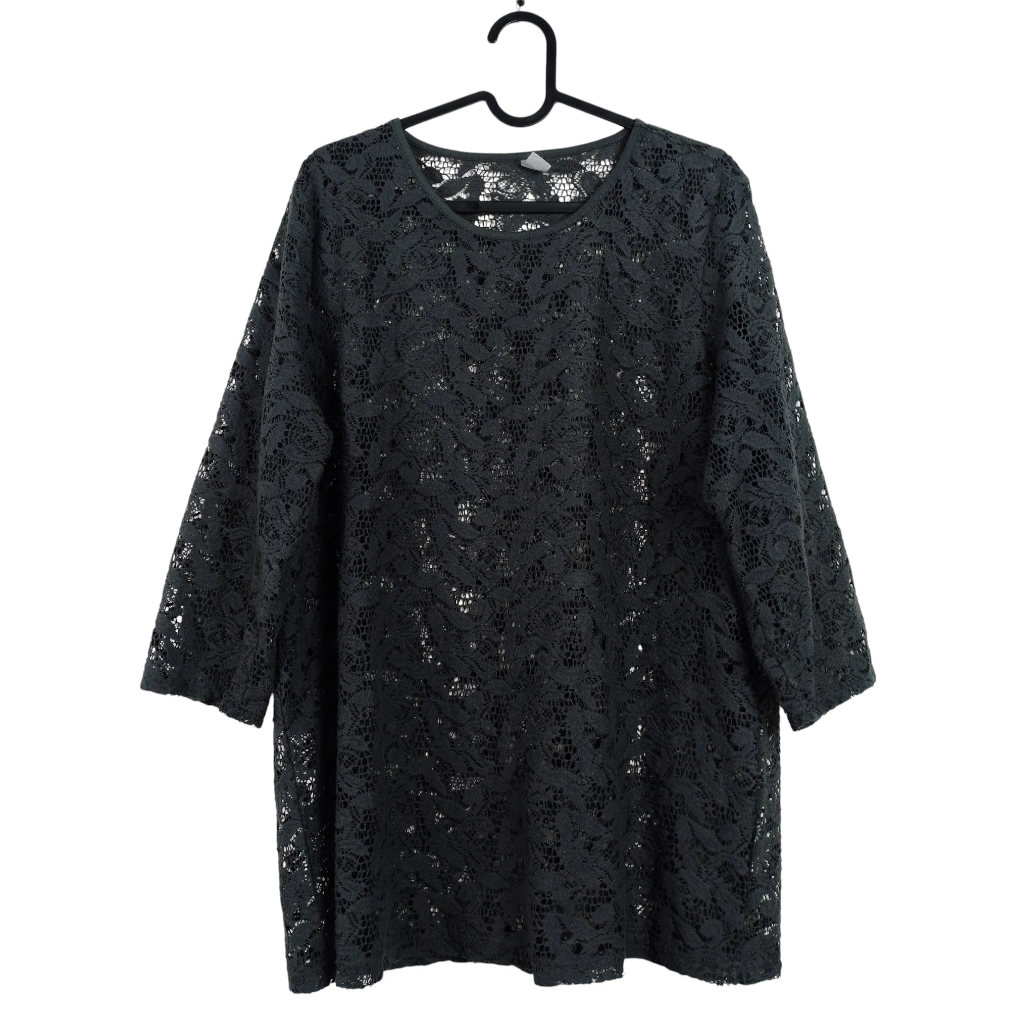 Elején flitterrel és virágmintával díszített, tunikafazonú női felső