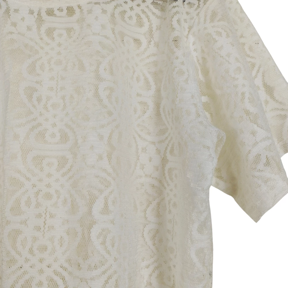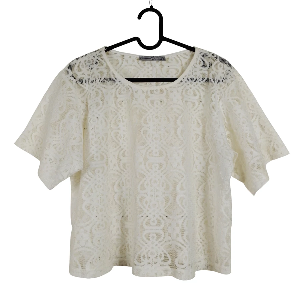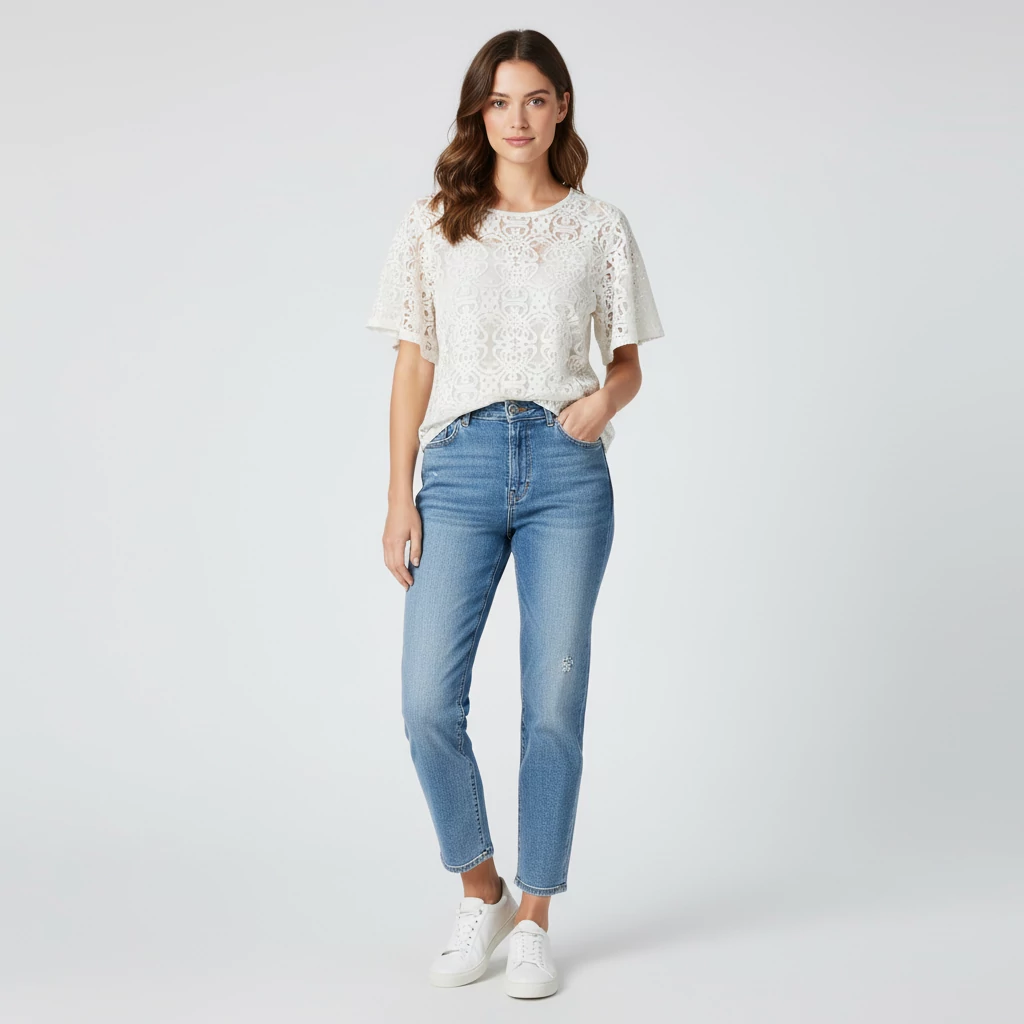 Alján csipkedíszítésű, színes női rövid fazonú trikó