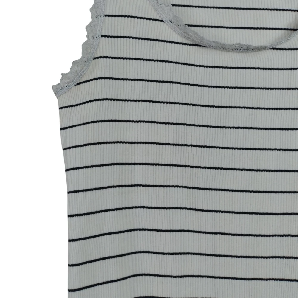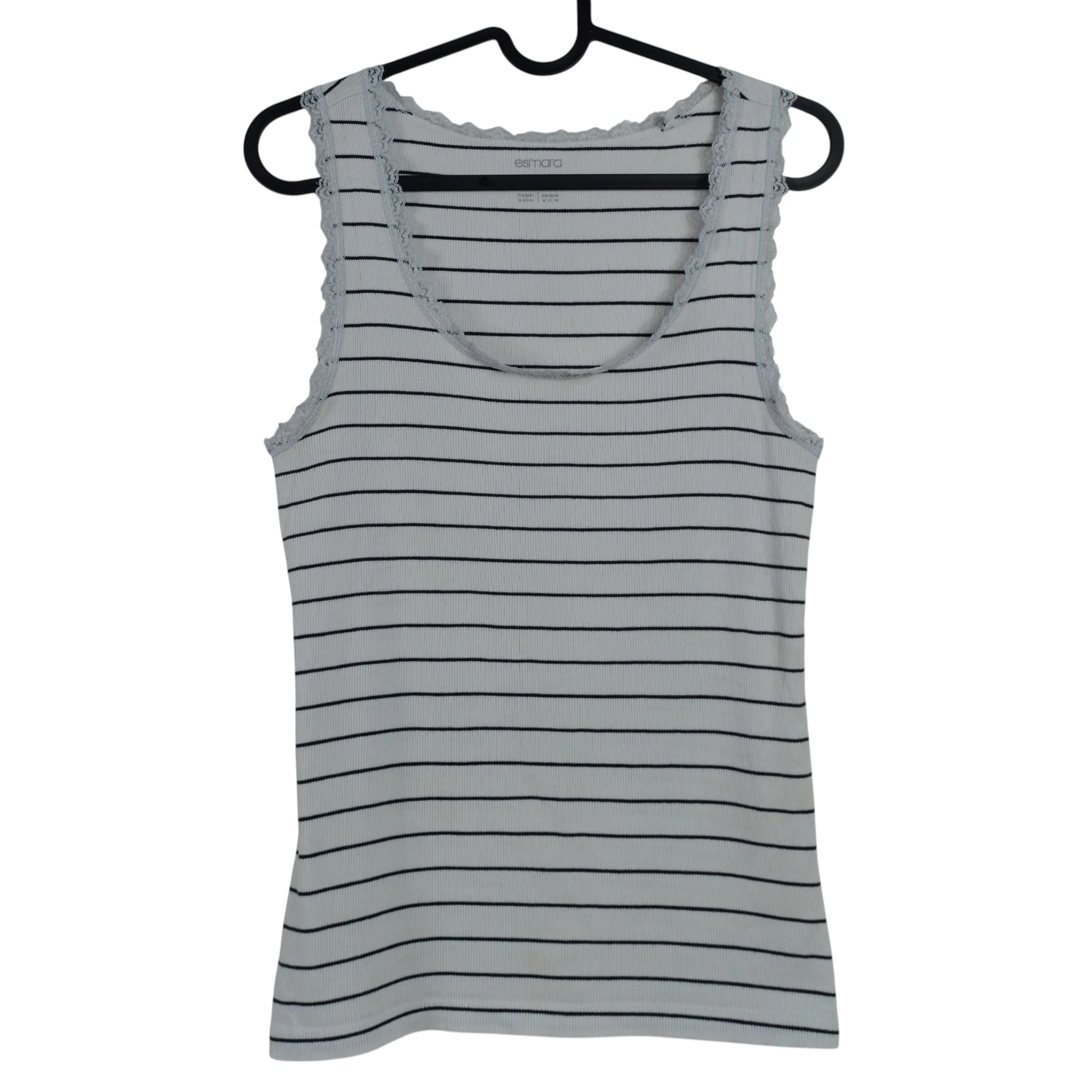Spagettipántos, mellrészén mintás szegélyű női felső