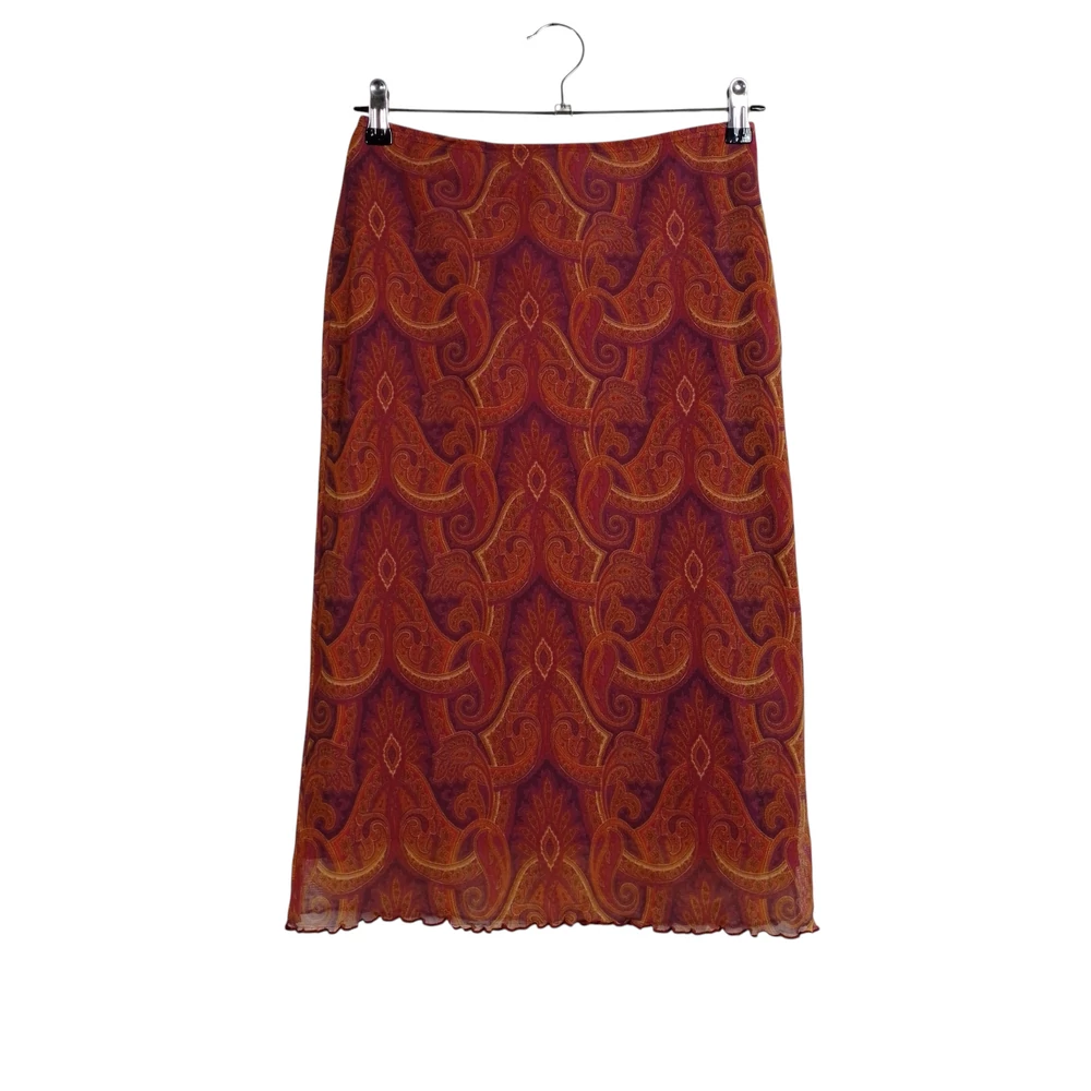 Derekán gumis, alján csipkével díszített, mintás női szoknya