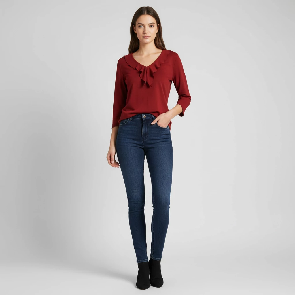 A termékfotón ábrázolt modell nem valós személy, mindössze az MI közreműködése által generált szimuláció és kifejezetten azt a célt szolgálja, hogy a ruhadarab egy outfit részeként történő viselés közben is bemutatásra kerüljön.