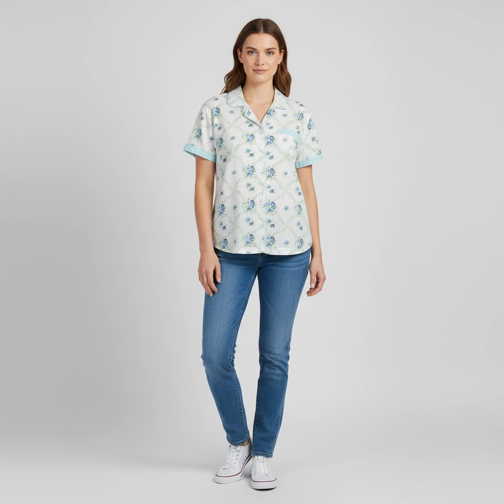 Egyedi jellemző(k): elején gombos, galléros, virágmintás