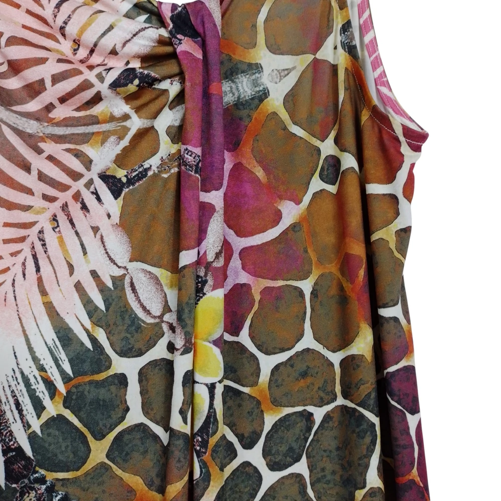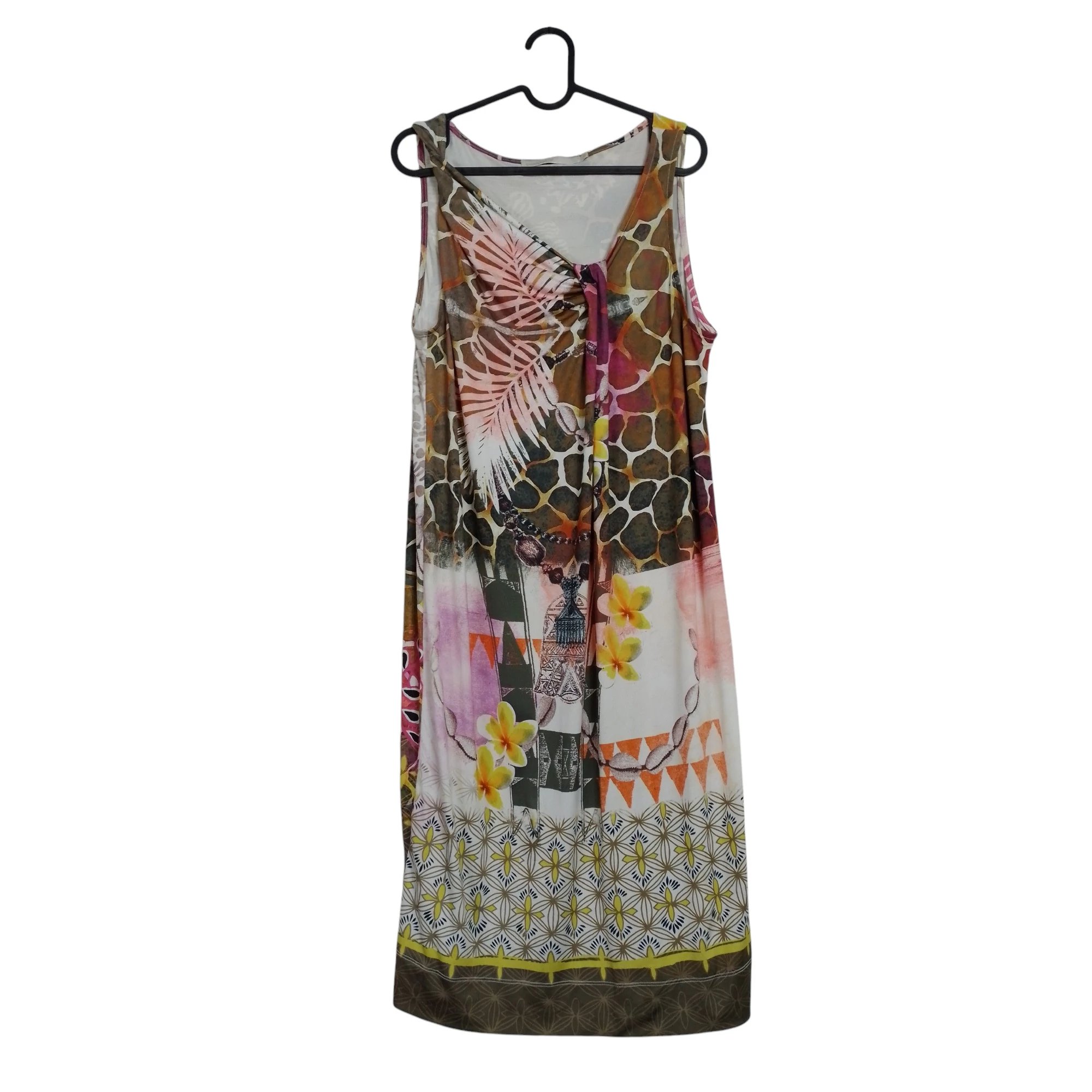 Elején átlapolt, oldalt megkötős, virágmintás női egész ruha
