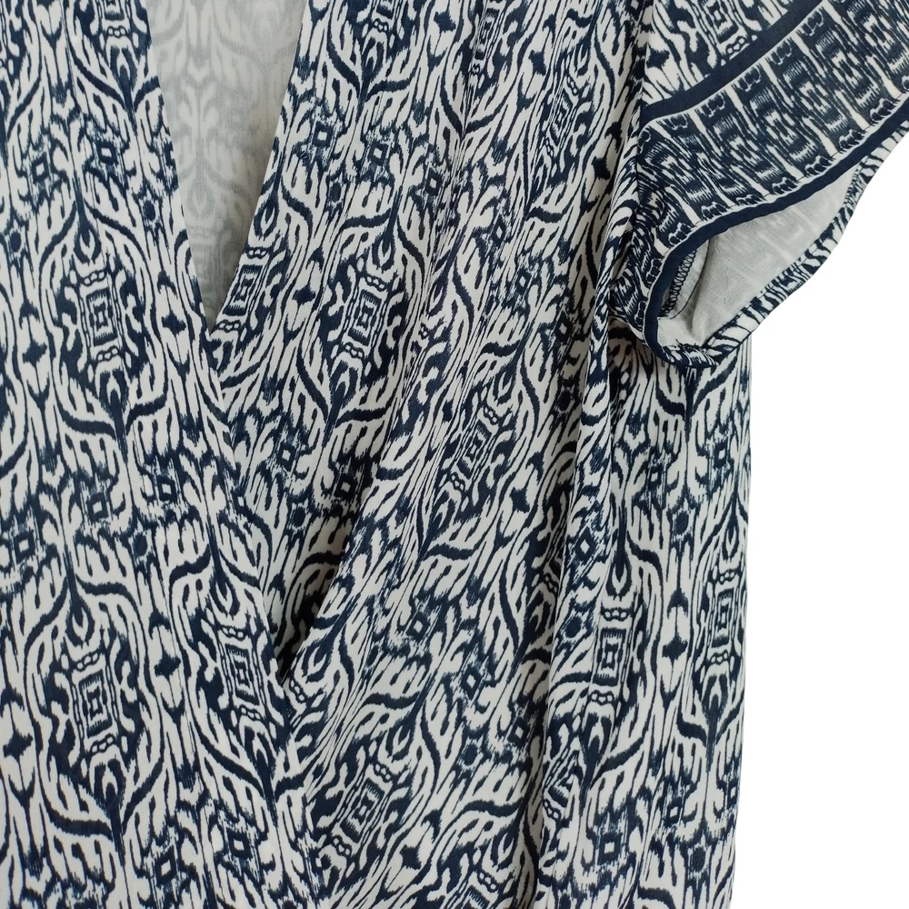 Spagettipántos, mellrészén mintás szegélyű női felső
