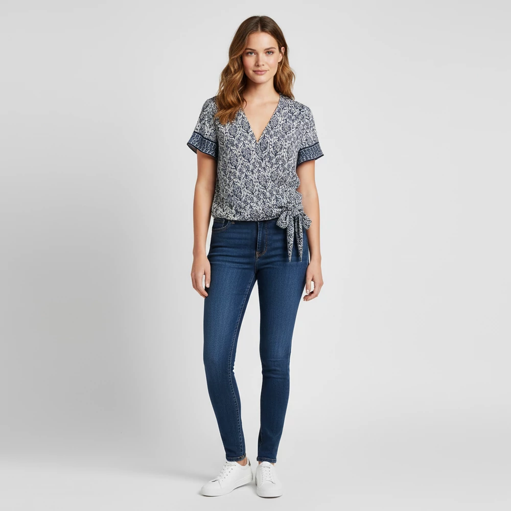 A termékfotón ábrázolt modell nem valós személy, mindössze az MI közreműködése által generált szimuláció és kifejezetten azt a célt szolgálja, hogy a ruhadarab egy outfit részeként történő viselés közben is bemutatásra kerüljön.