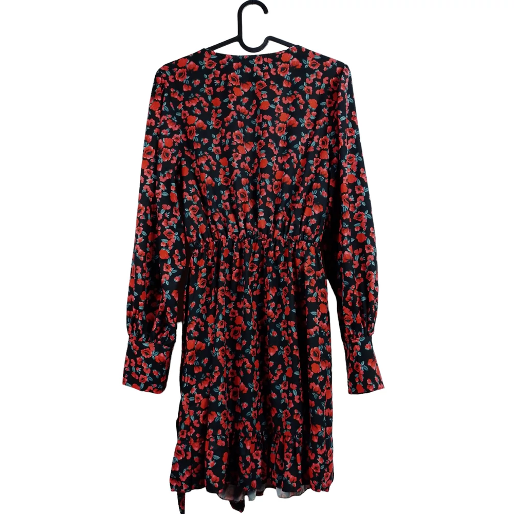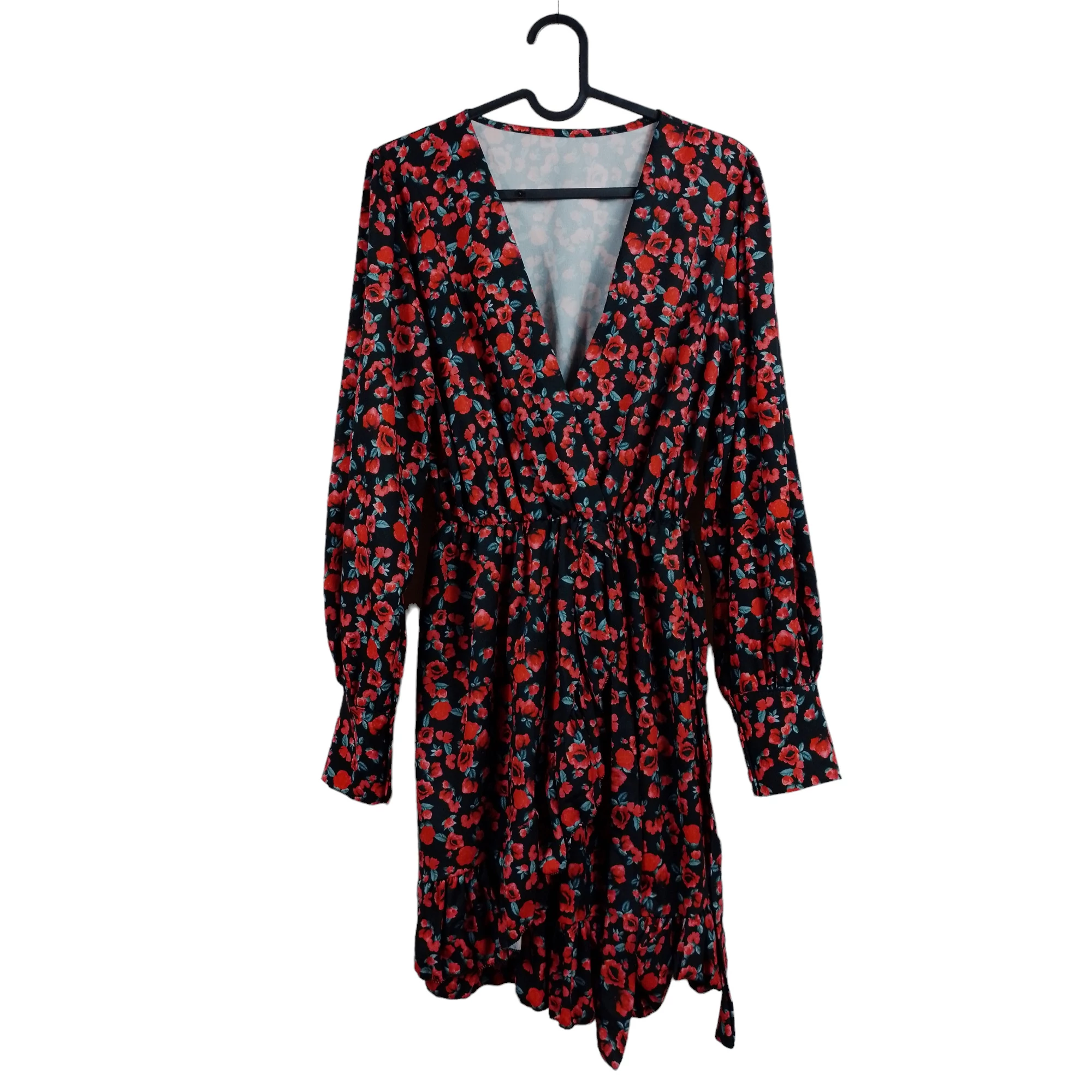 Hátrészén cipzáras derékrésze alatt mintás, bélelt női egész ruha
