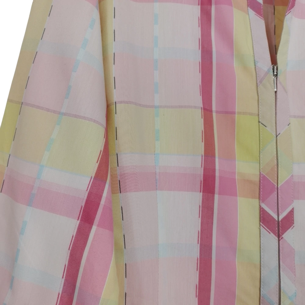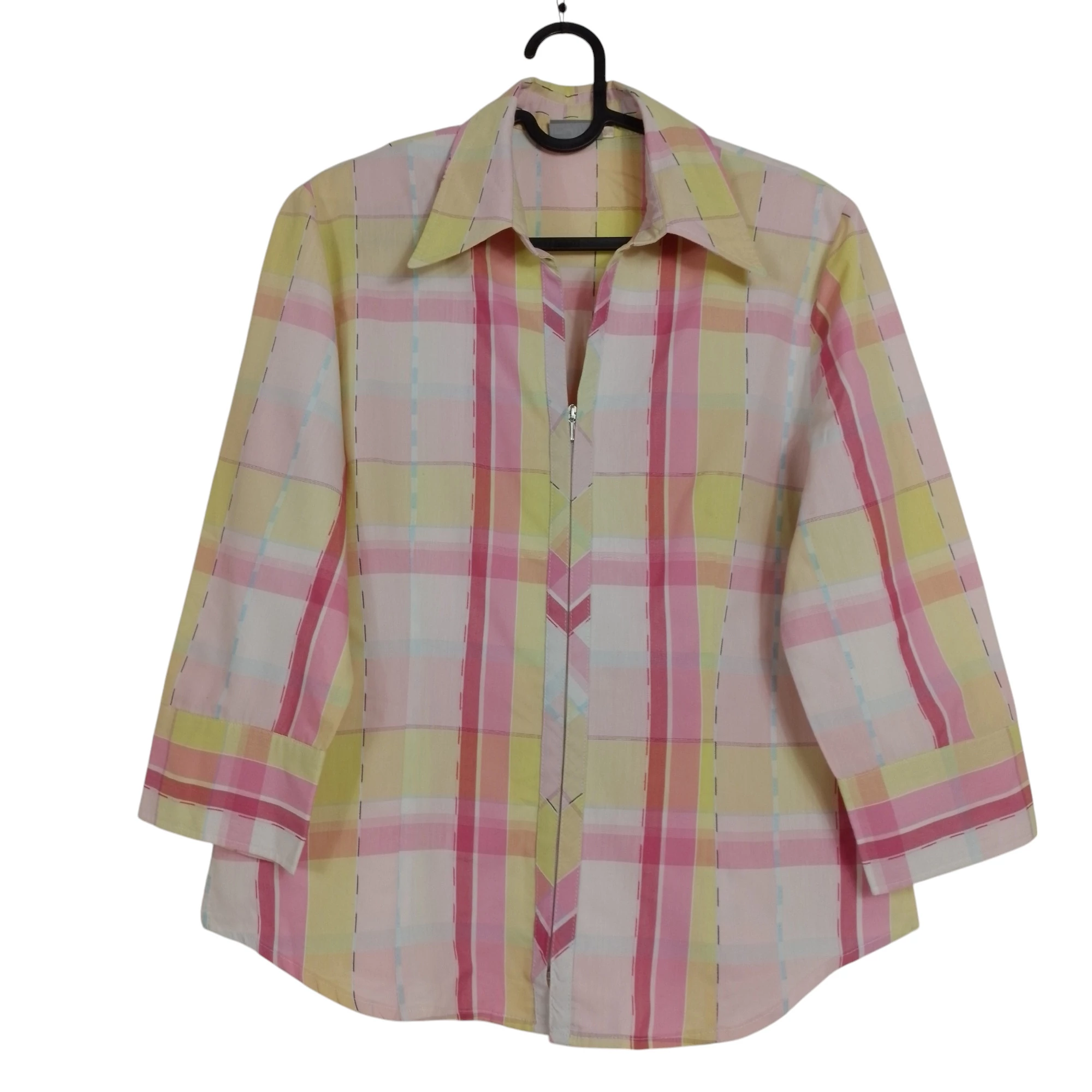 Mellrészén pliszírozott díszítésű, elején gombos női felső