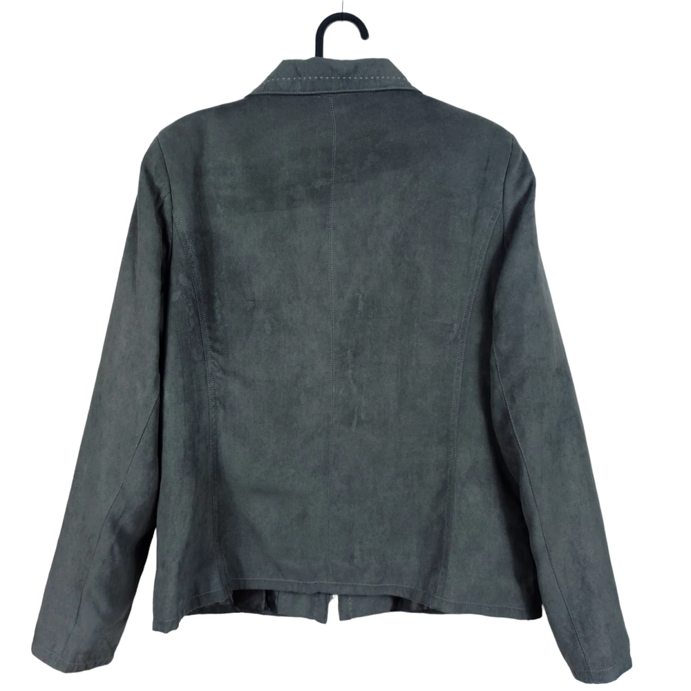 Elején gombos és zsebes, derekán megkötős átmeneti női kabát
