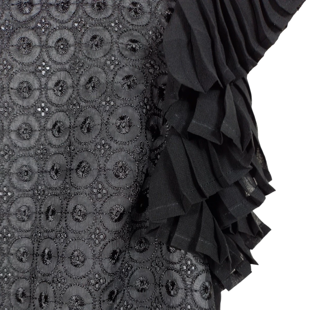 Mellrészén varrással és gyöngyökkel díszített, alján aszimmetrikus női egész ruha