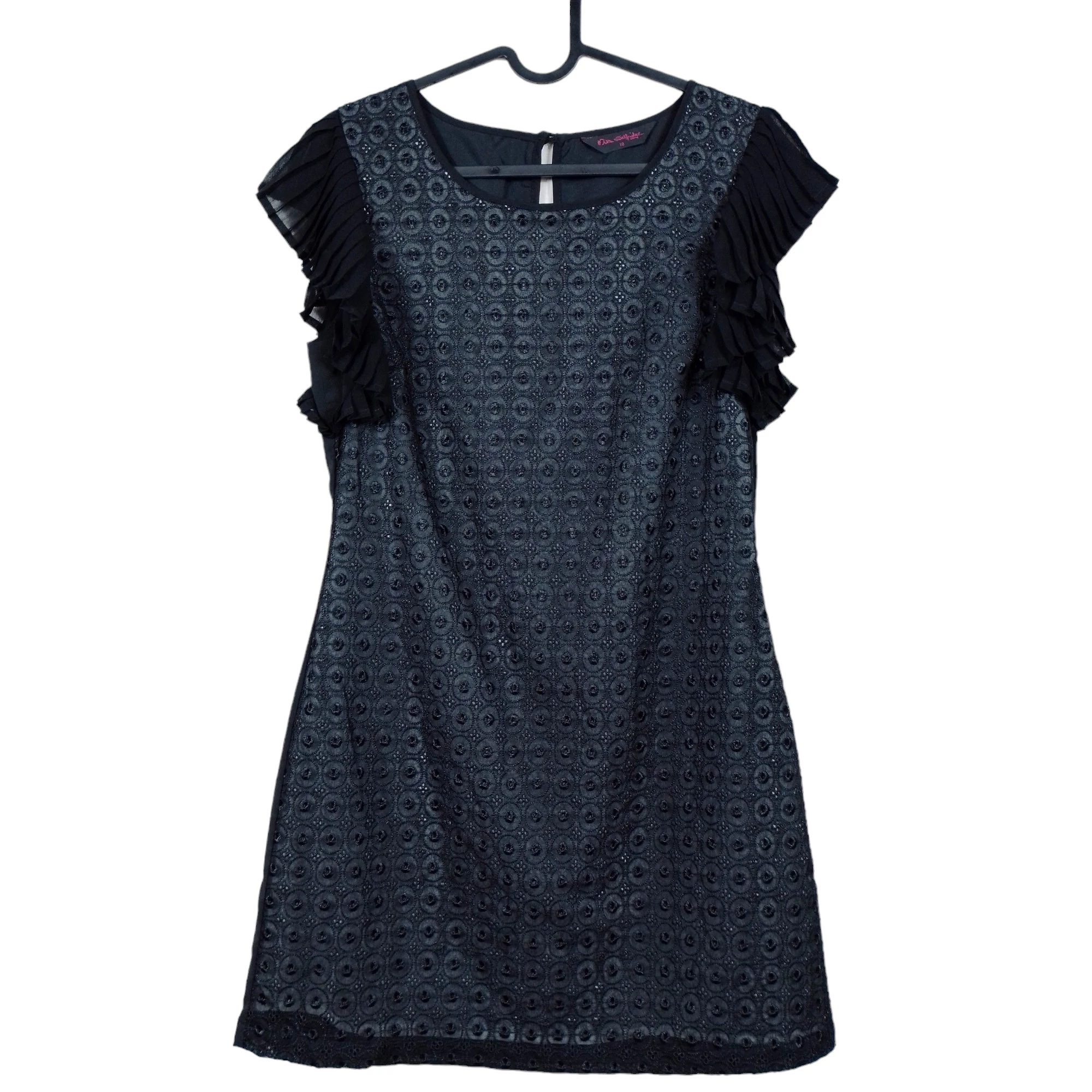 Nyakbaakasztós lyukasztott mintás, bélelt női egész ruha