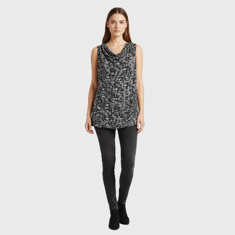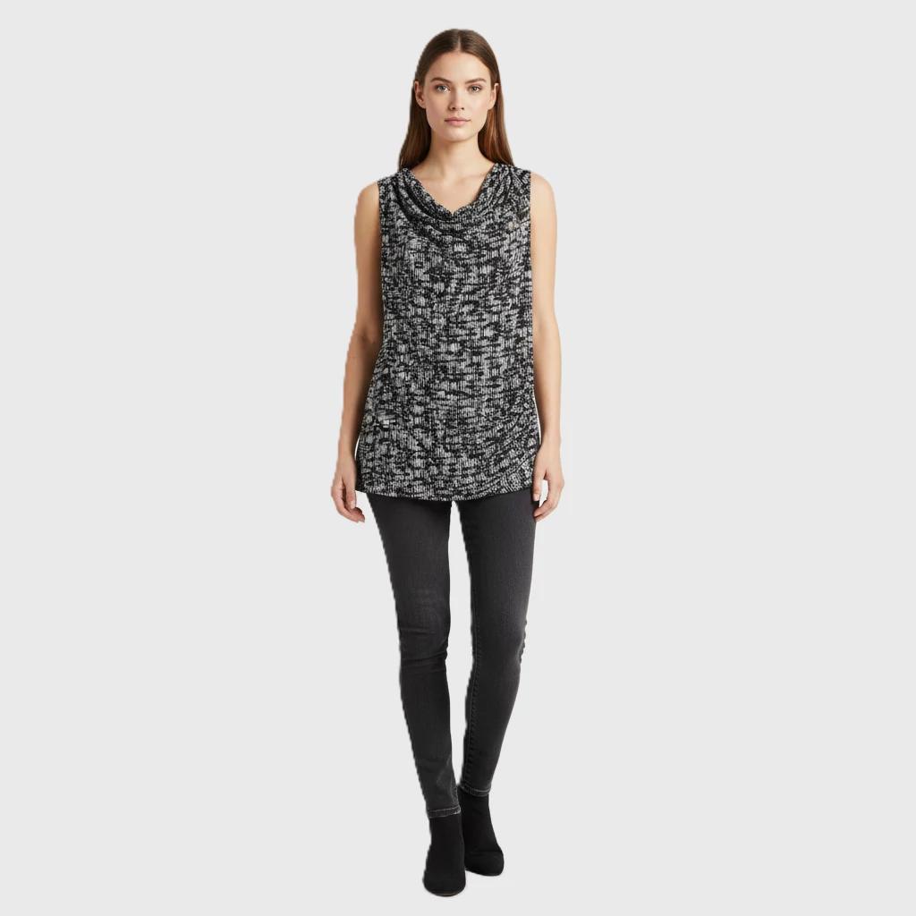 Duplahatású, elején ejtett anyagú, mintás női felső