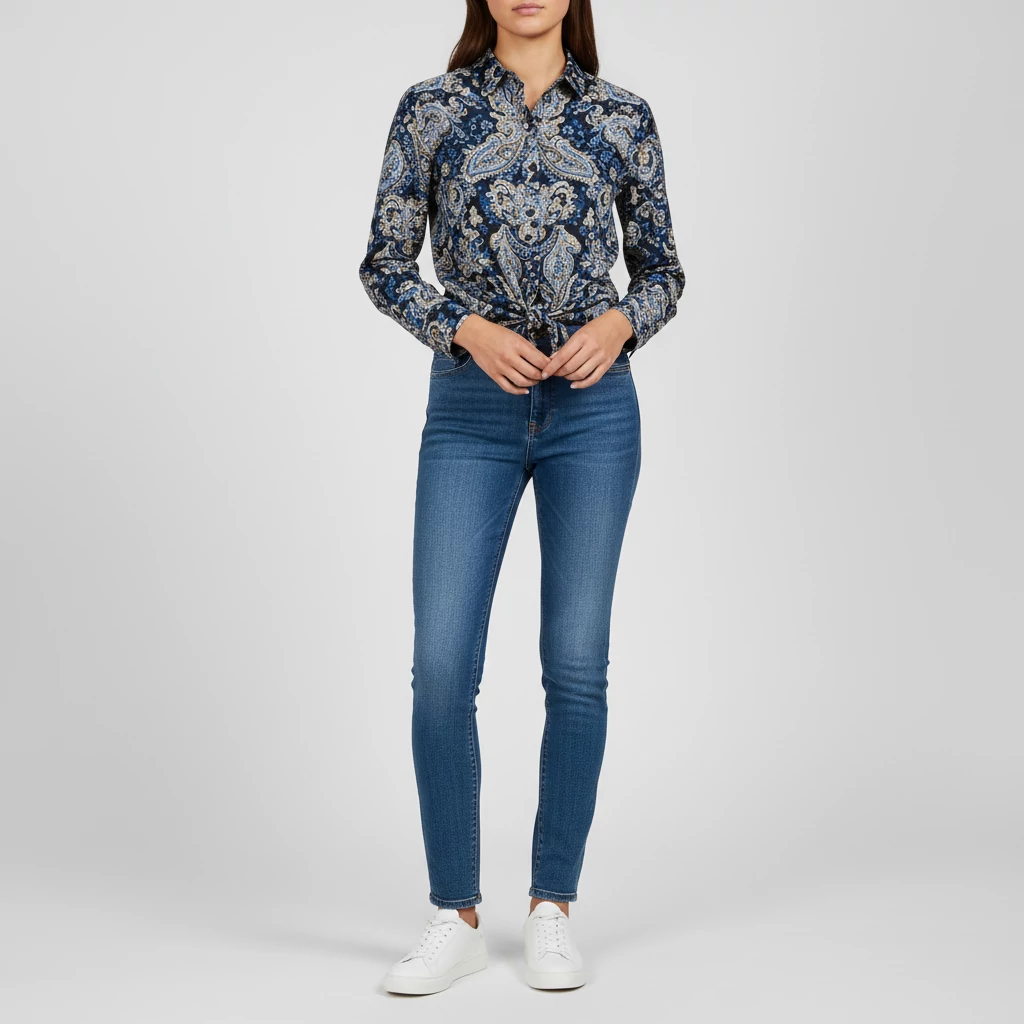 A termékfotón ábrázolt modell nem valós személy, mindössze az MI közreműködése által generált szimuláció és kifejezetten azt a célt szolgálja, hogy a ruhadarab egy outfit részeként történő viselés közben is bemutatásra kerüljön.