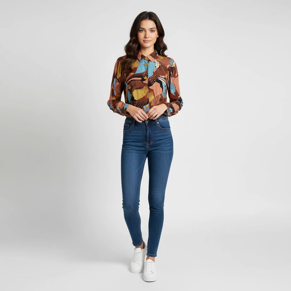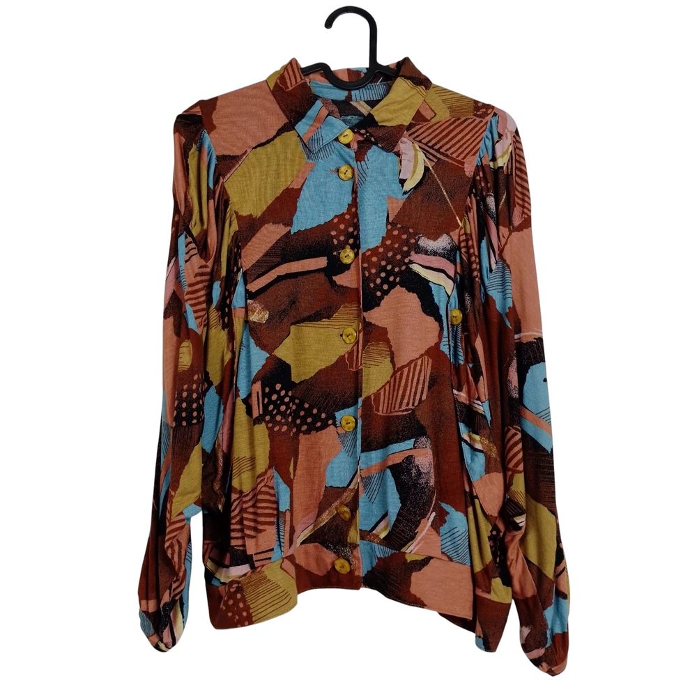 Hátul cipzáras, aranyszínű mintával díszített, bélelt női felső