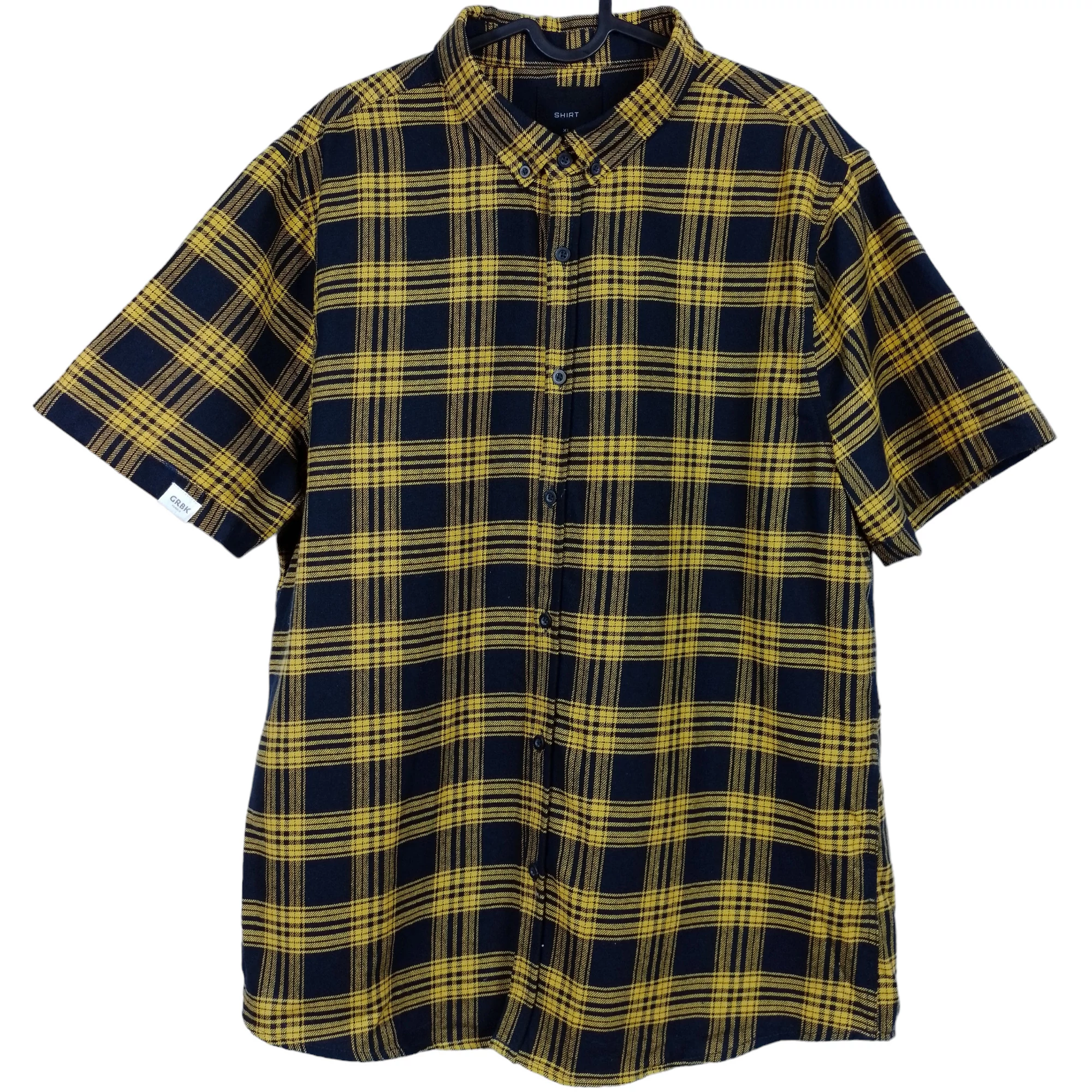 Elején gombos, kockás férfi felső