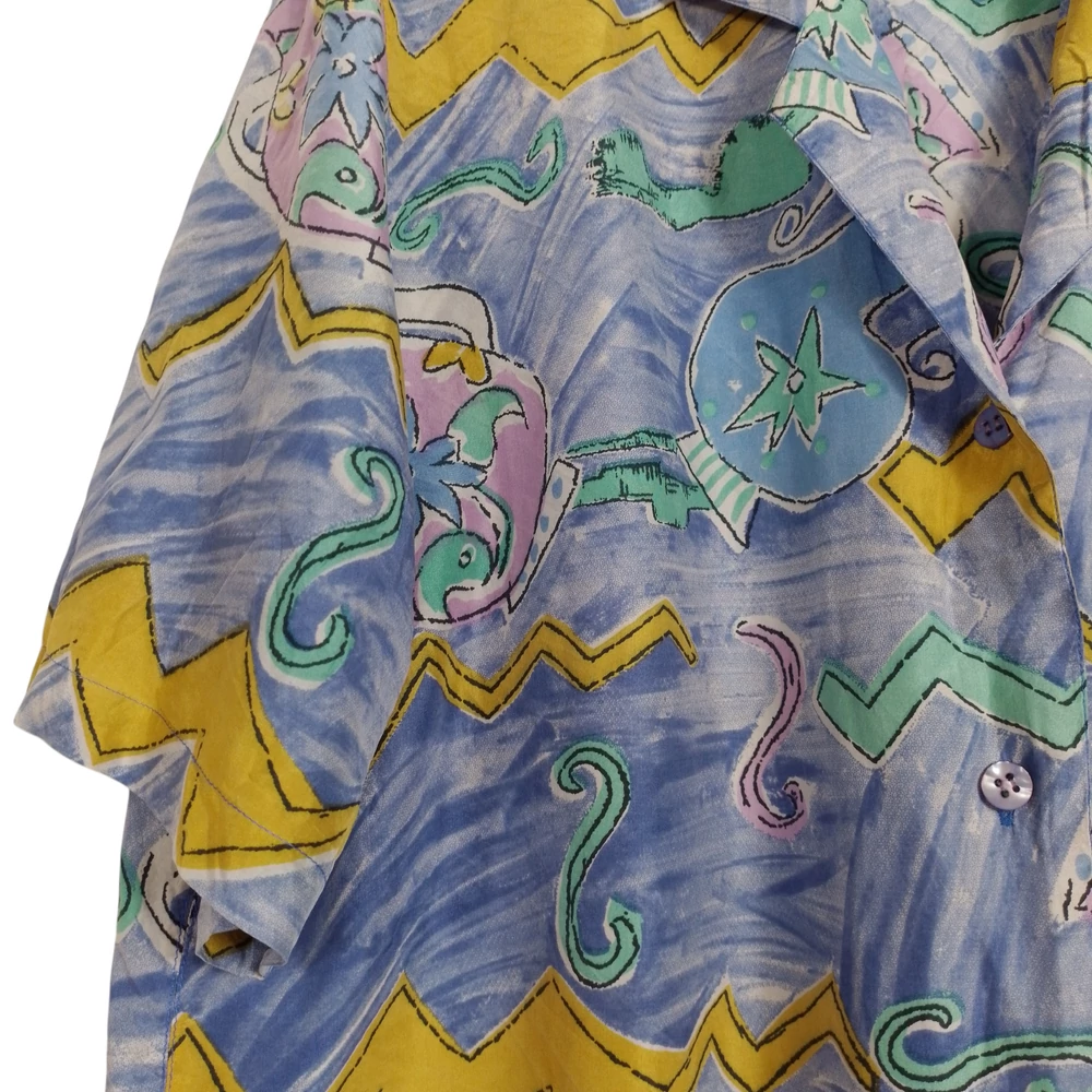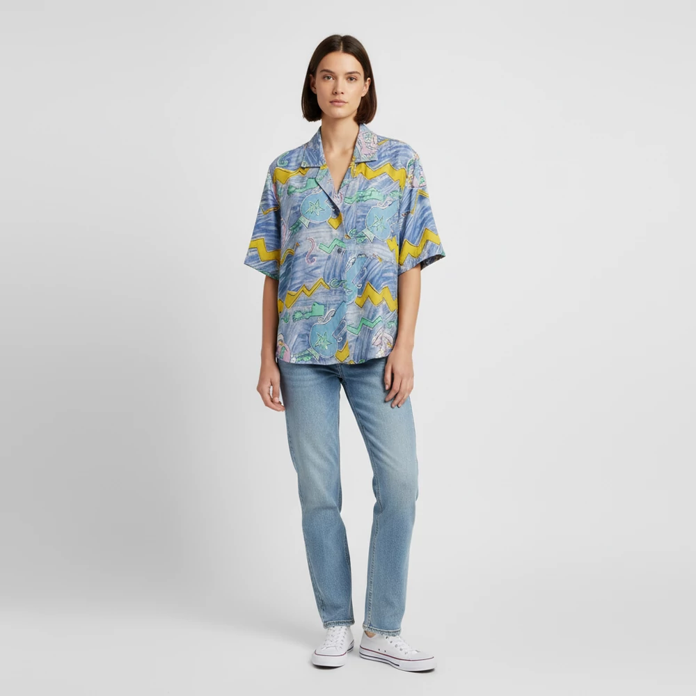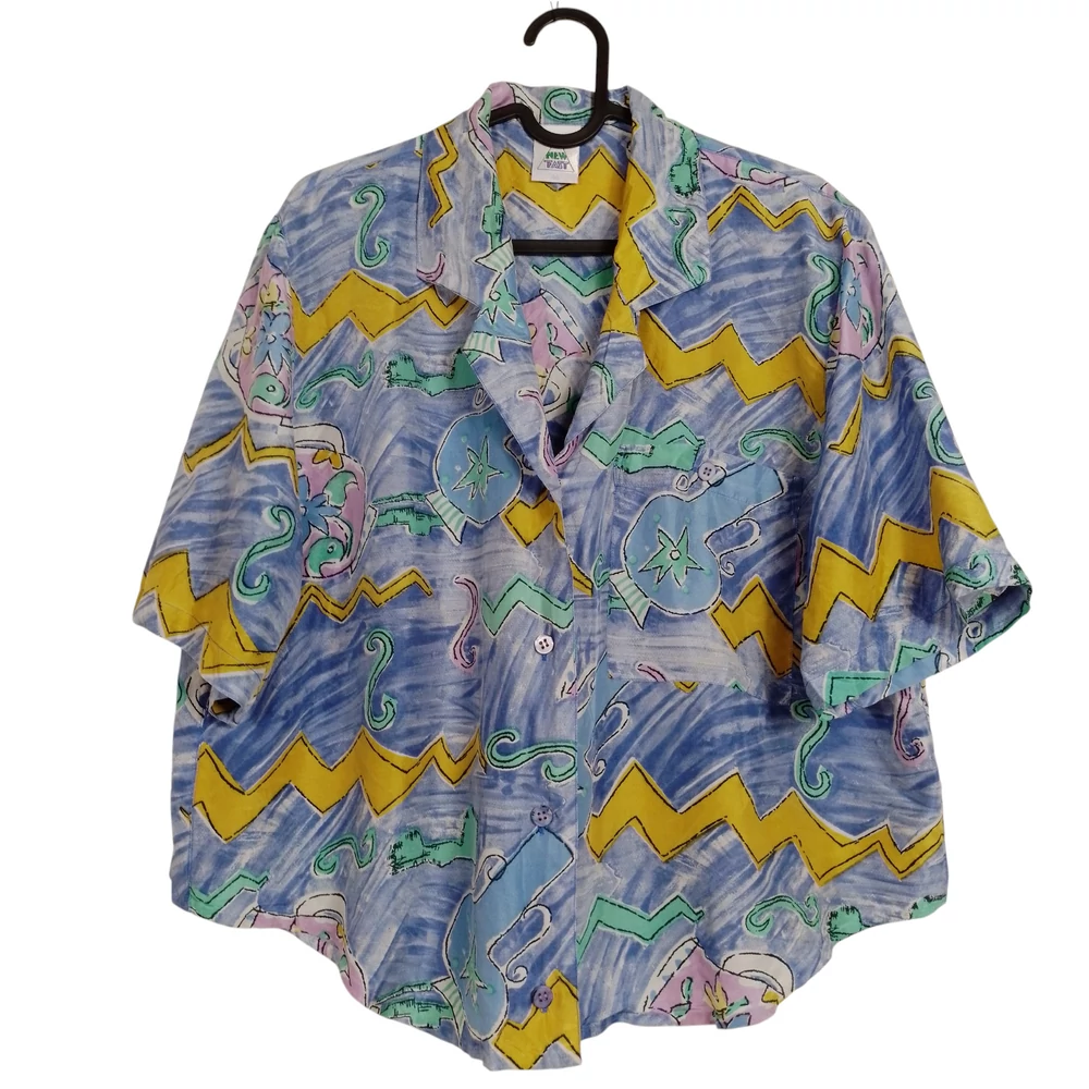 Virágmintás, derékrészén gumis, mellrészén fodros női felső