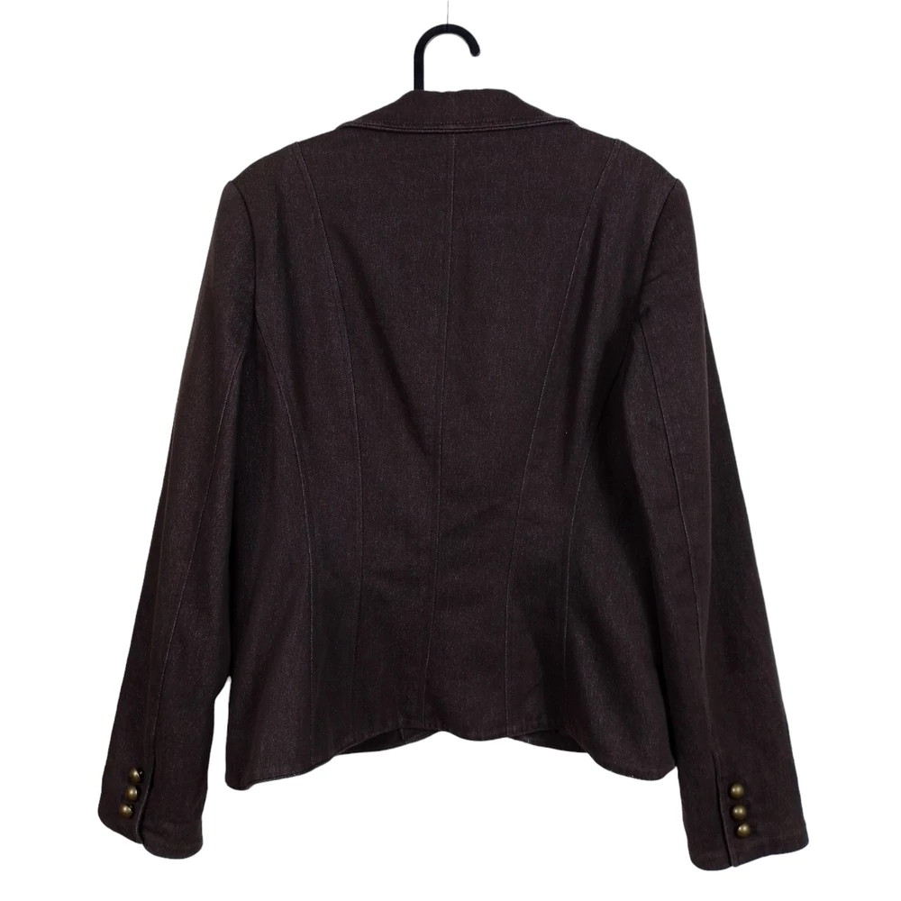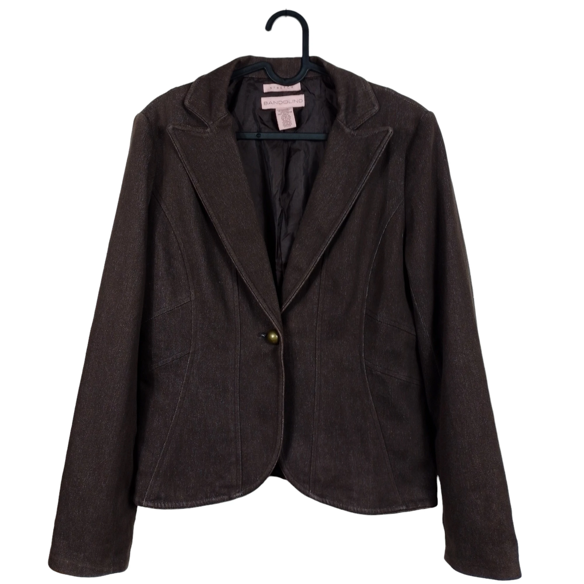 Elején gombos és zsebes, gyűrt anyagú, kockás női zakó