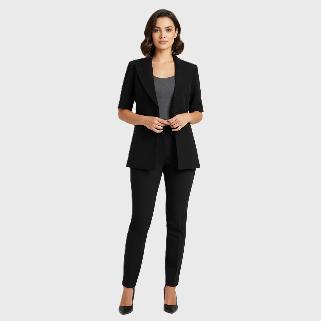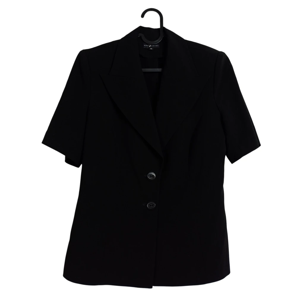 Elején gombos és zsebes, gyűrt anyagú, kockás női zakó
