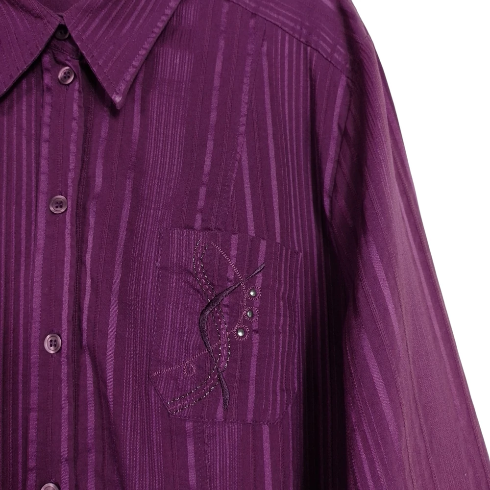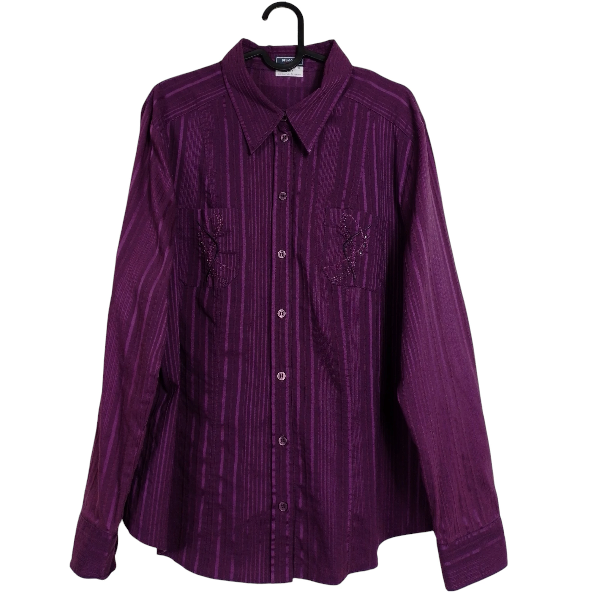Mellrészén gombos, alján oldalt hosszított, mintás női felső