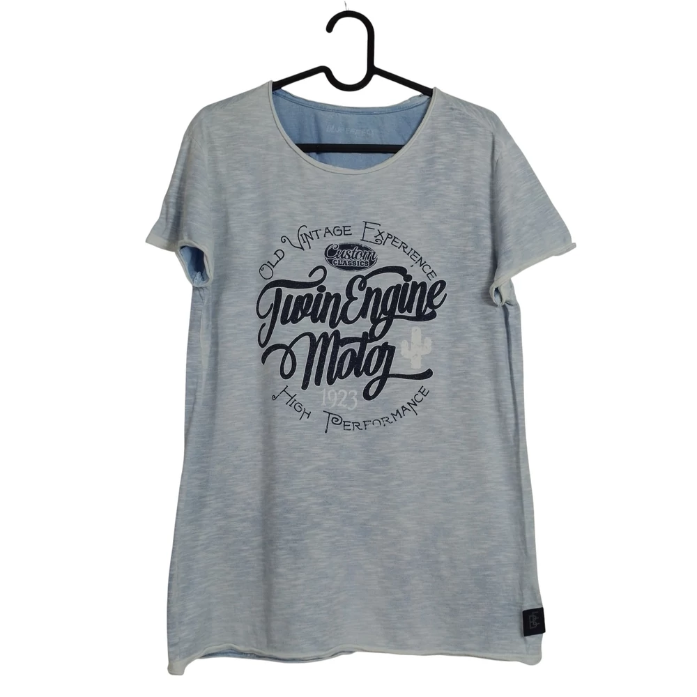 Galléros, elején gombos, hátsó részén feliratos férfi felső