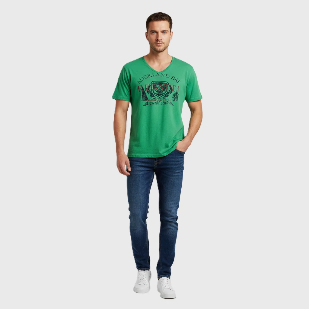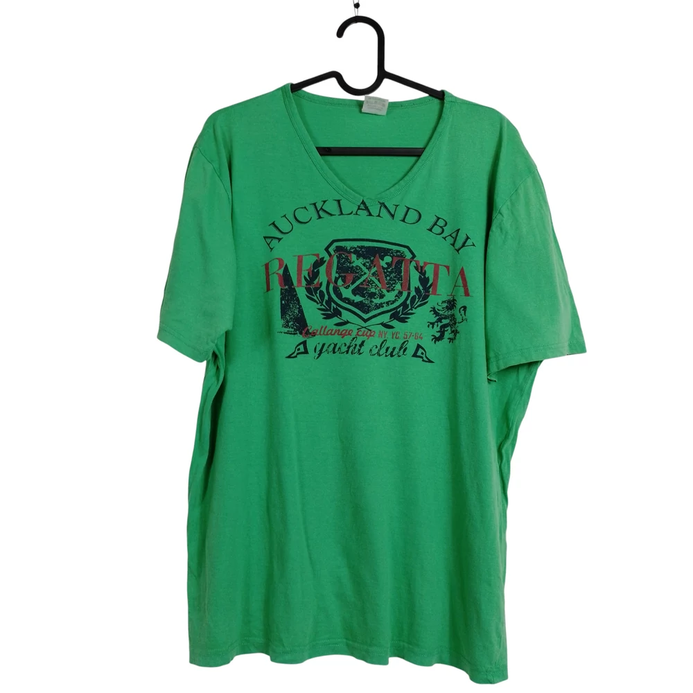 Galléros, elején gombos, hátsó részén feliratos férfi felső