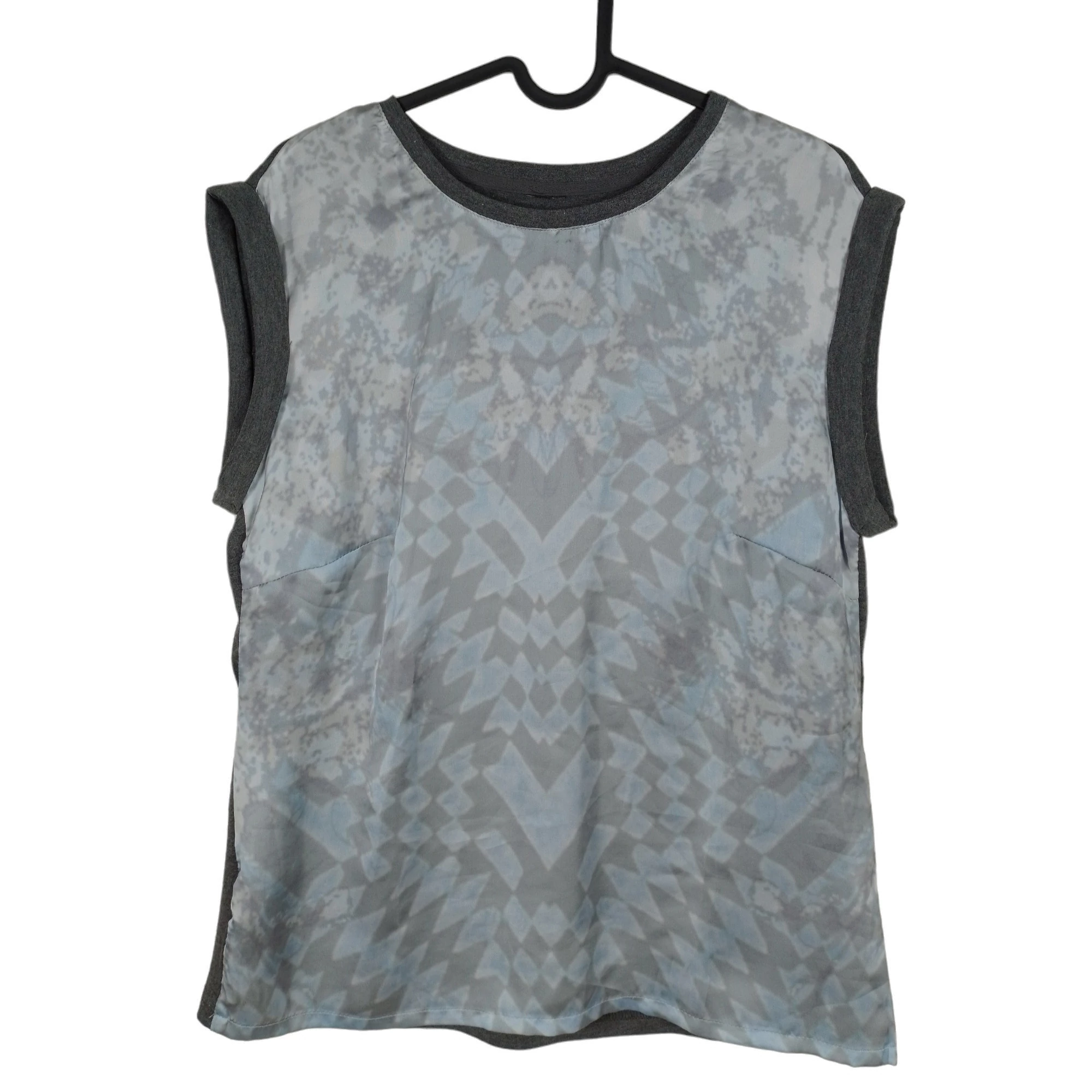 Duplahatású, elején ejtett anyagú, mintás női felső