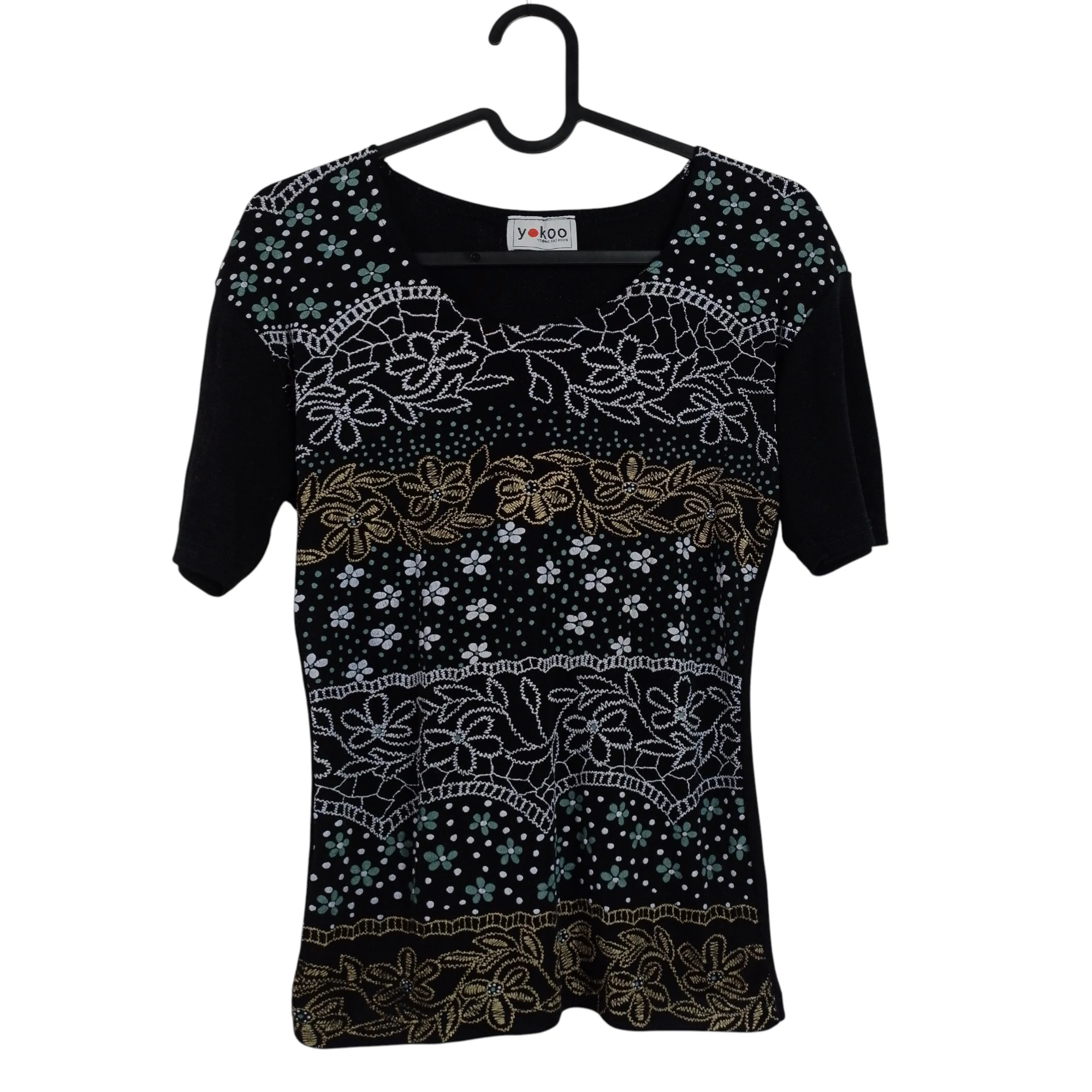 Hátul cipzáras, aranyszínű mintával díszített, bélelt női felső