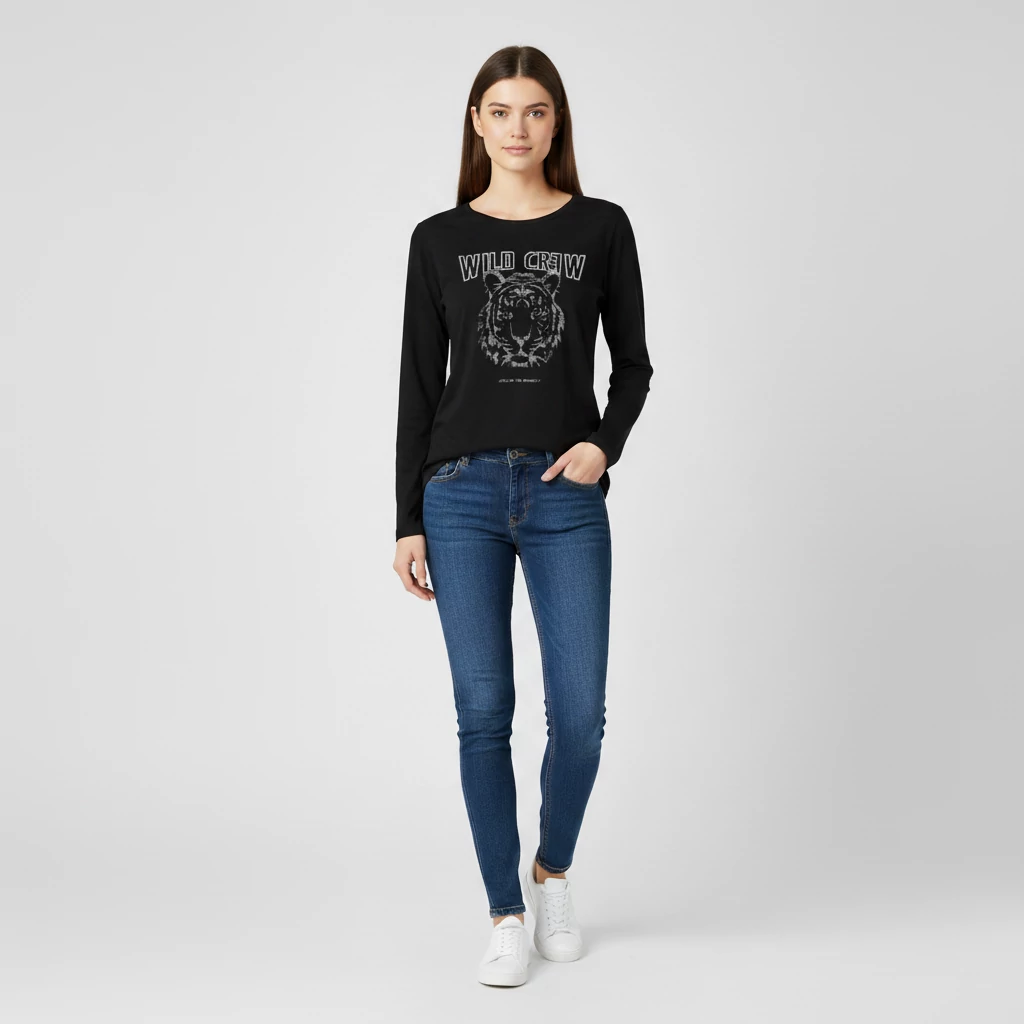A termékfotón ábrázolt modell nem valós személy, mindössze az MI közreműködése által generált szimuláció és kifejezetten azt a célt szolgálja, hogy a ruhadarab egy outfit részeként történő viselés közben is bemutatásra kerüljön.