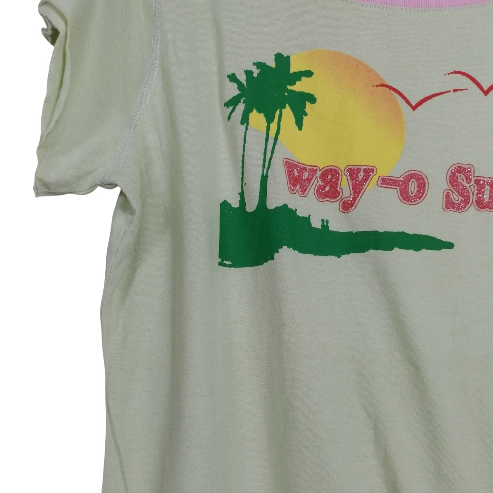 Spagettipántos, mellrészén mintás szegélyű női felső