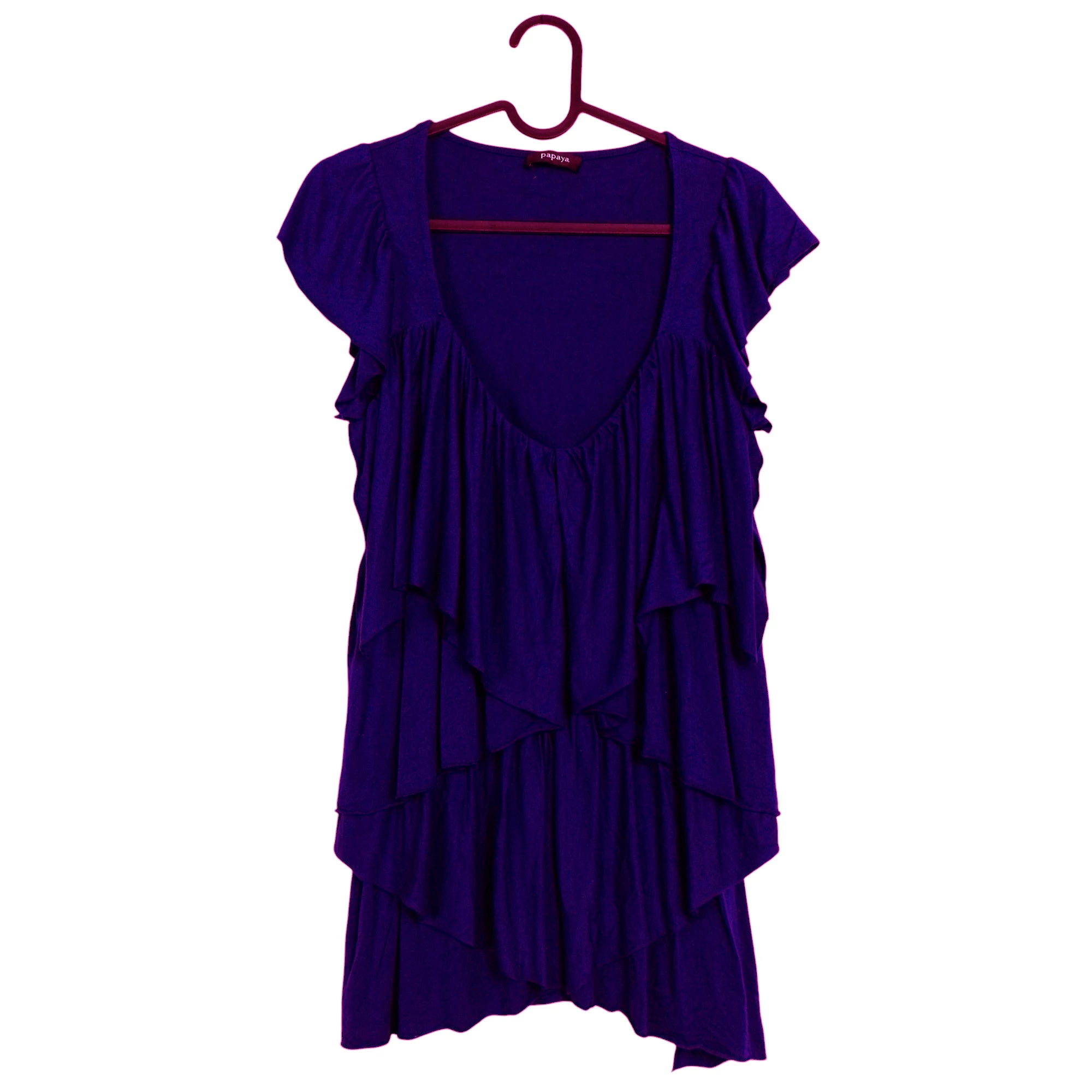Mellrészén gombos, alján oldalt hosszított, mintás női felső