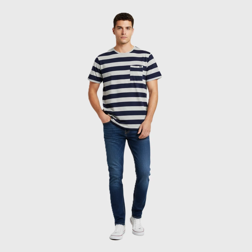 Elején zsebes, csíkos férfi póló