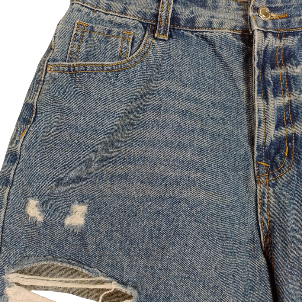 Elől-hátul zsebes, koptatott női rövidnadrág