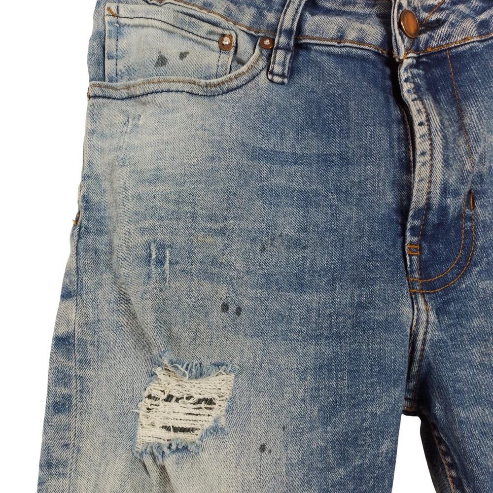 Egyedi jellemző(k): hátul zsebes, derekán gumis, koptatott