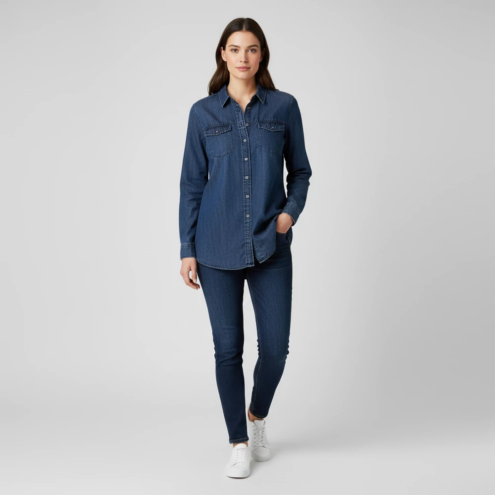 Egyedi jellemző(k): elején gombos, galléros, koptatott farmer
