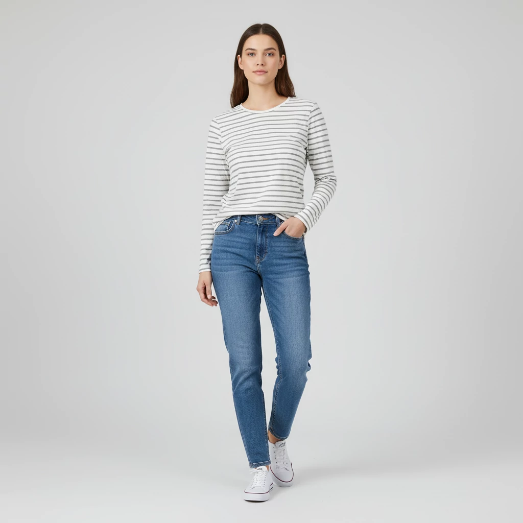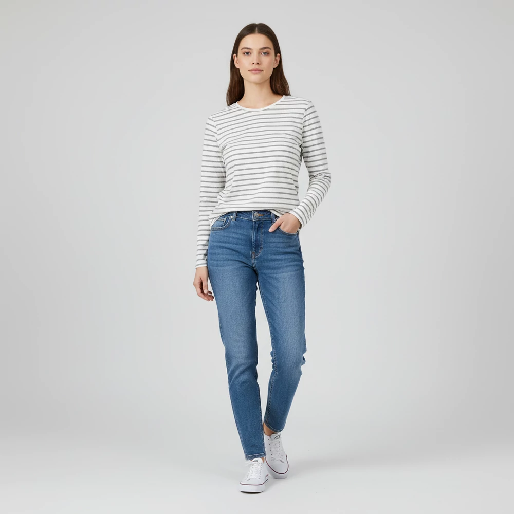 A termékfotón ábrázolt modell nem valós személy, mindössze az MI közreműködése által generált szimuláció és kifejezetten azt a célt szolgálja, hogy a ruhadarab egy outfit részeként történő viselés közben is bemutatásra kerüljön.
